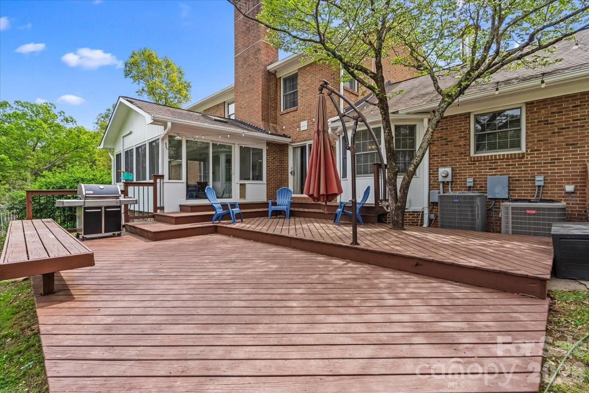 Classic estate-like home in Norman Woods community only 1 mile from Stutts Marina & boat launch! 5000+ square feet of living space on over an acre lot, beautifully landscaped & fully fenced in. Master on main level includes secluded reading nook, his-&-hers double closets, & updated en-suite bathroom with tiled steam shower & ample storage. Main floor boasts kitchen with gas-range, formal & informal dining spaces, office, mudroom with laundry, open living room, spacious sunroom with vaulted ceiling, & exterior access to large back deck & sprawling green yard. Four additional bedrooms on upper level all include walk-in closets; upstairs completed with two additional full baths. Stately interior features include slate floor accents, hardwood floors, two stone fireplaces, & fully finished lower level with large family room, kitchenette, full bathroom #4, & media/theater room. Lower level also features workshop with exterior entrance, generous additional storage room, & separate utility room equipped with home systems such as water-softener, central vacuum, etc. Lower level completes with walk-out access to back private covered patio & above-ground sauna/hot-tub. LOW county taxes! This home is truly lacking nothing!