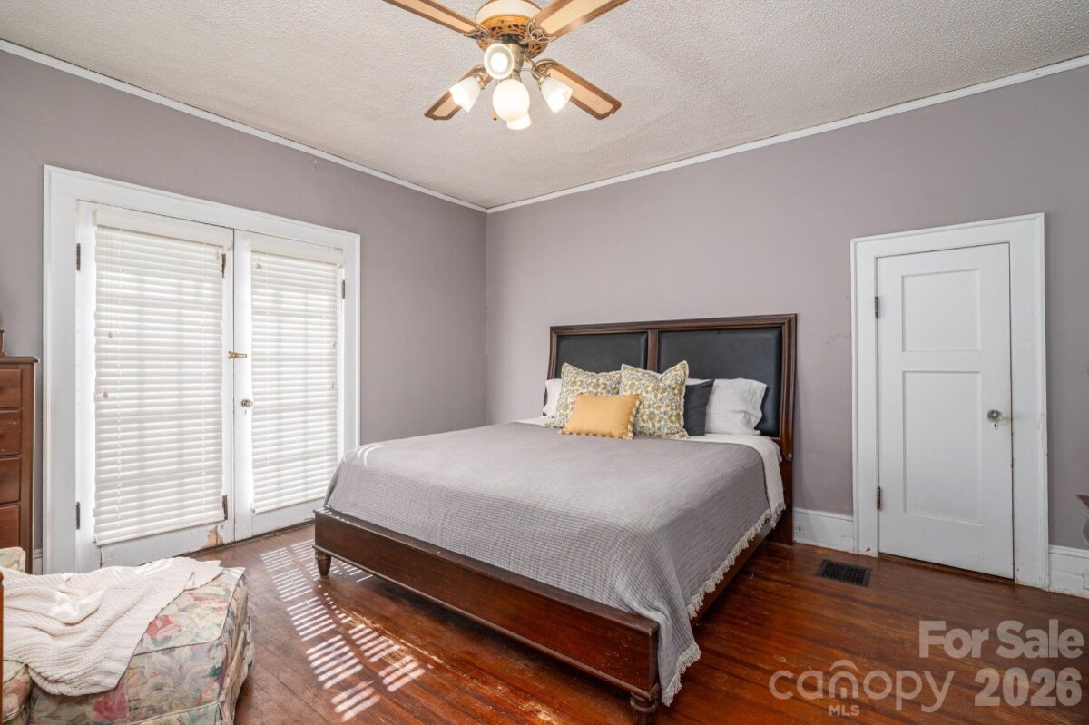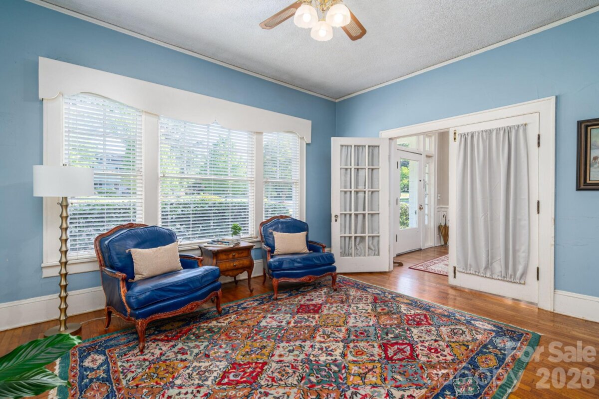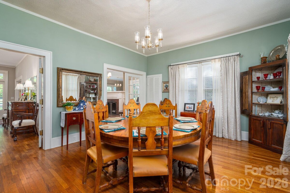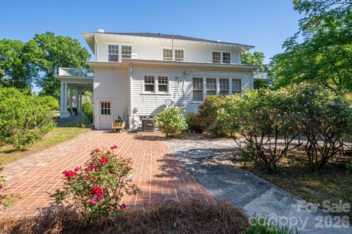 A timeless southern classic steeped in local history and classic southern grace, this four square designed home is a rare find for those who value architectural integrity. With its crisp, newly painted white shake exterior (Fall 2025) and commanding presence on a spacious corner lot, this home serves as an "unspoiled canvas" ready for its next chapter. The interior is a love letter to a bygone era retaining original features: hardwood floors, traditional staircase in a welcoming entry foyer, ten sets of French doors, authentic millwork, and fireplace mantle. A covered space designed for slow springtime evenings and neighborhood watching. A circular driveway with a classic porte-cochère. A private patio overlooking a garden landscape. Roof replaced within the last five years. This property is being sold as an estate and the heirs have not occupied the home in many years, they have limited personal knowledge regarding specific systems; however, the home’s "bones" and original features speak for themselves. Please note: Select rose bushes and a sentimental camellia are treasures of the family and will be removed prior to closing. Plastic garden shed in backyard and pendant light over breakfast table in kitchen does not convey. Disclosure: buried oil tank in back of home.