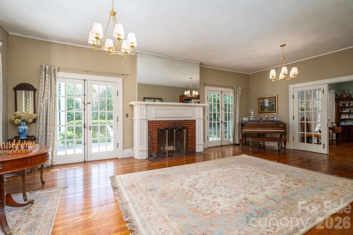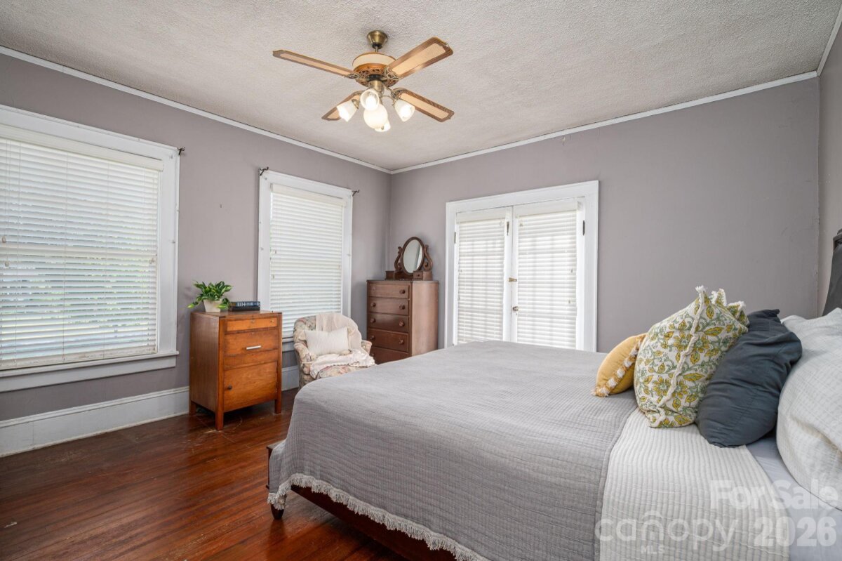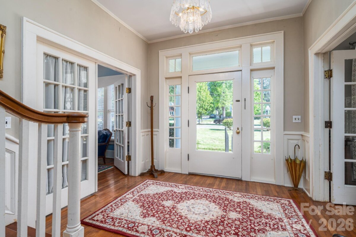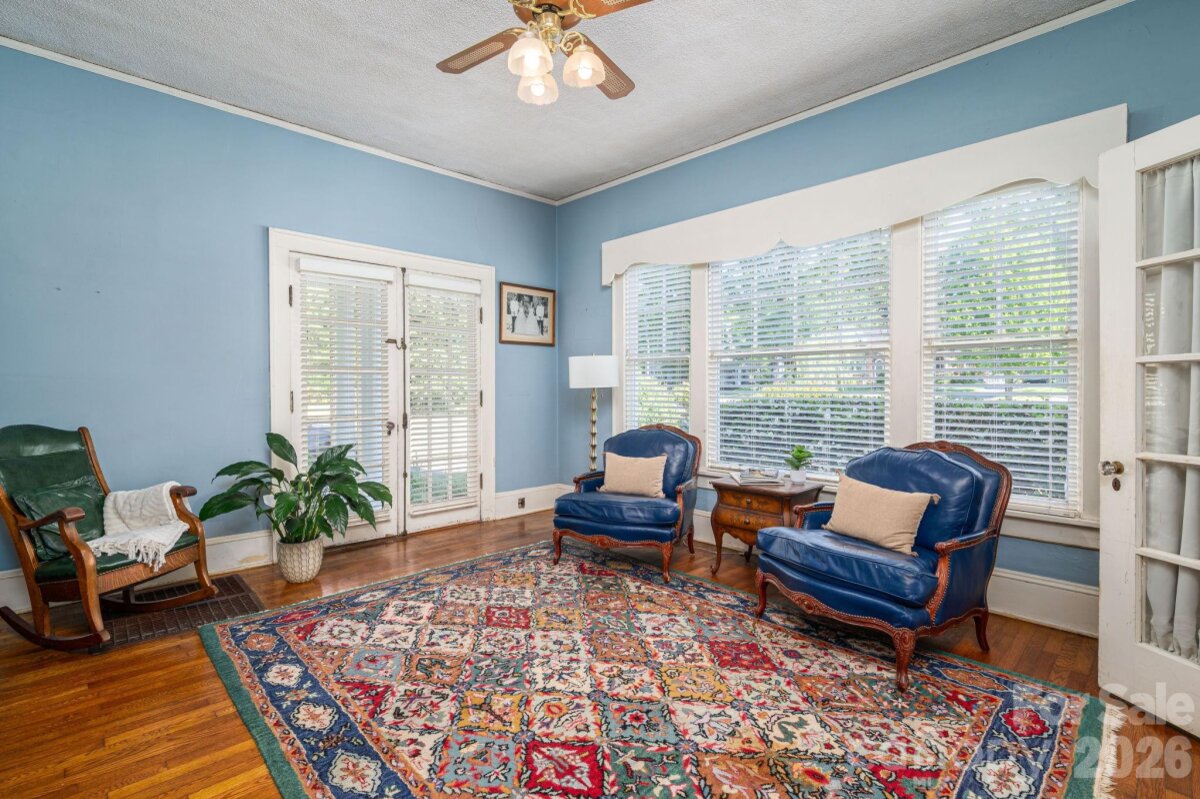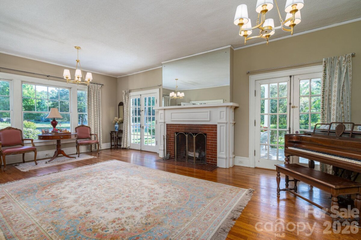 A timeless southern classic steeped in local history and classic southern grace, this four square designed home is a rare find for those who value architectural integrity. With its crisp, newly painted white shake exterior (Fall 2025) and commanding presence on a spacious corner lot, this home serves as an "unspoiled canvas" ready for its next chapter. The interior is a love letter to a bygone era retaining original features: hardwood floors, traditional staircase in a welcoming entry foyer, ten sets of French doors, authentic millwork, and fireplace mantle. A covered space designed for slow springtime evenings and neighborhood watching. A circular driveway with a classic porte-cochère. A private patio overlooking a garden landscape. Roof replaced within the last five years. This property is being sold as an estate and the heirs have not occupied the home in many years, they have limited personal knowledge regarding specific systems; however, the home’s "bones" and original features speak for themselves. Please note: Select rose bushes and a sentimental camellia are treasures of the family and will be removed prior to closing. Plastic garden shed in backyard and pendant light over breakfast table in kitchen does not convey. Disclosure: buried oil tank in back of home.