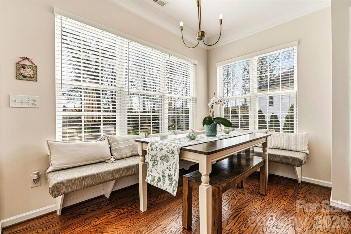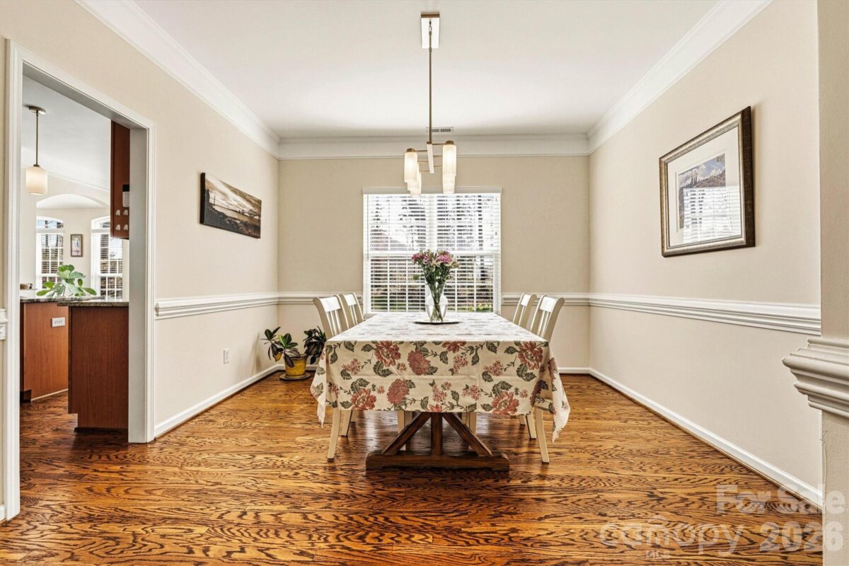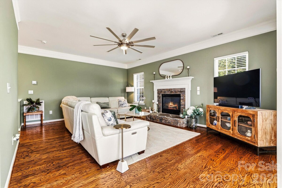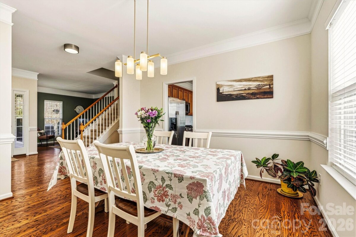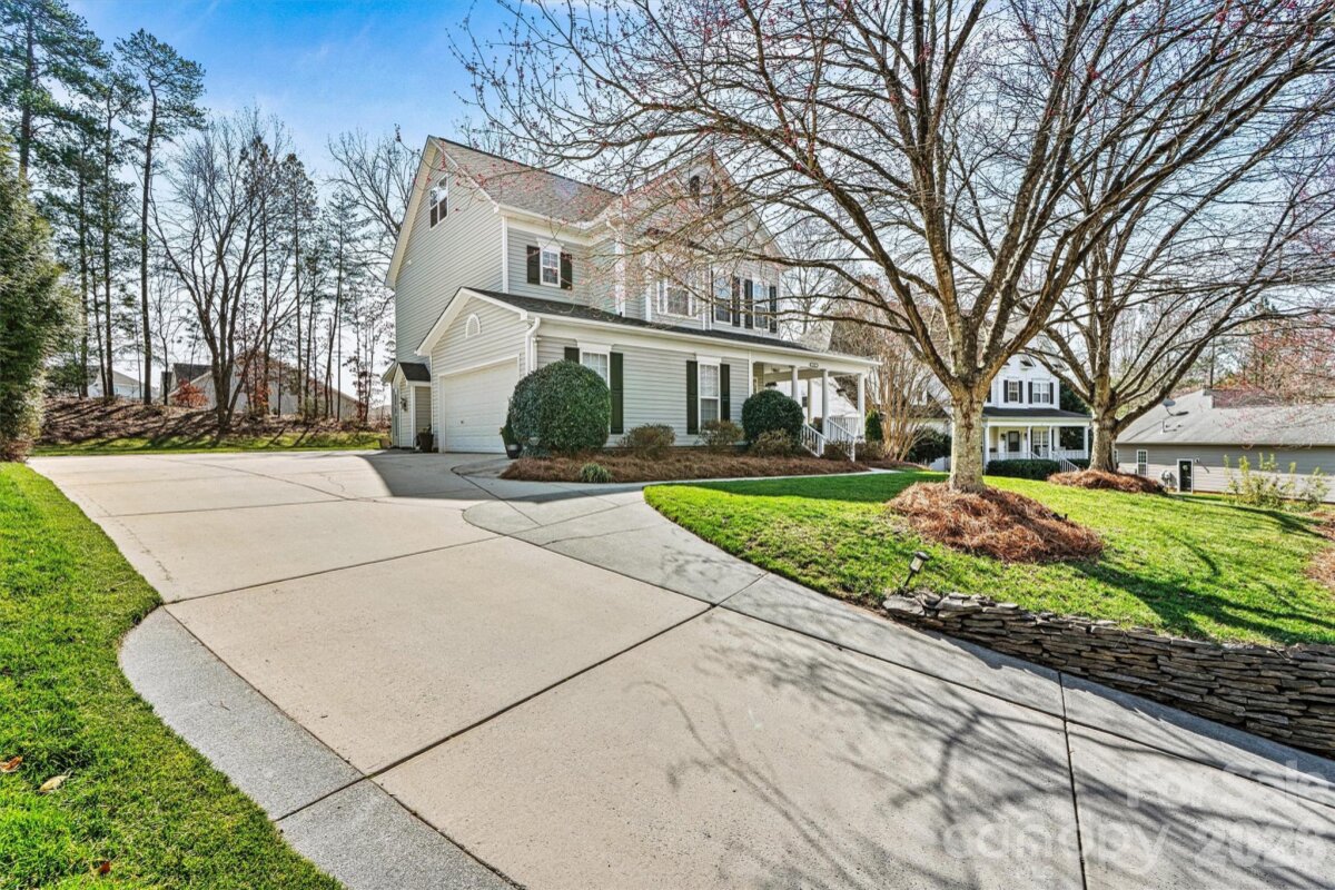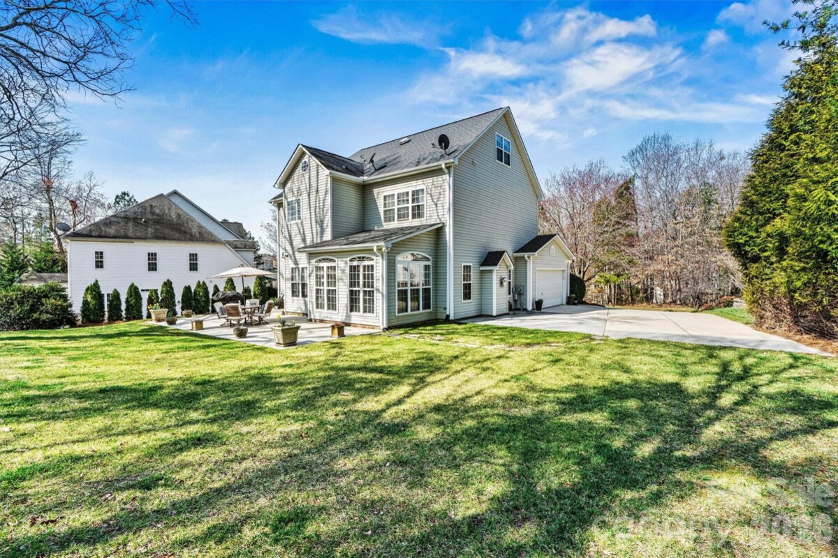 "Three Levels of Living, Endless Comfort." This 5 BR home has it all: 2002 Niblock Home, Great Room, Dining Room, Eat-in Kitchen W/ Banquette, Sun Room, Office, Large Primary with WIC and Spacious Ensuite, 3Rd Floor BR/ Bonus WIC. This beautifully maintained property features a spacious front porch and real oak hardwood floors throughout the main level. The kitchen showcases granite countertops, pull-out cabinetry, an updated tile backsplash, modern light fixtures with dimmers, and Samsung stainless-steel appliances. Bathrooms are enhanced with the same granite as the kitchen. Enjoy cozy evenings by the gas brick fireplace and entertain with ease on the large patio overlooking a mature wooded lot. The side-load garage, spacious driveway, and inviting outdoor areas make this home perfect for gatherings. Major systems have been thoughtfully updated: • HVAC replaced in 2025 • Second HVAC replaced in 2023 • Furnace replaced in 2023 • Water heater replaced in 2023 • Roof replaced in 2014 • Garage door features soft-close and Genie remote app access. Located in the desirable Harris Village community with a pool and affordable HOA at just $625 per year — all within the Mooresville Graded School District. Move-in ready with peace of mind updates already completed!