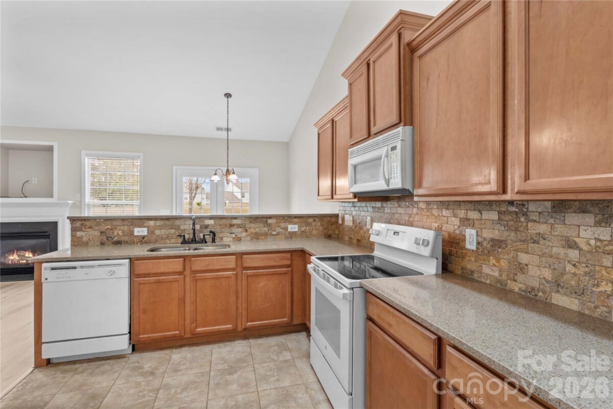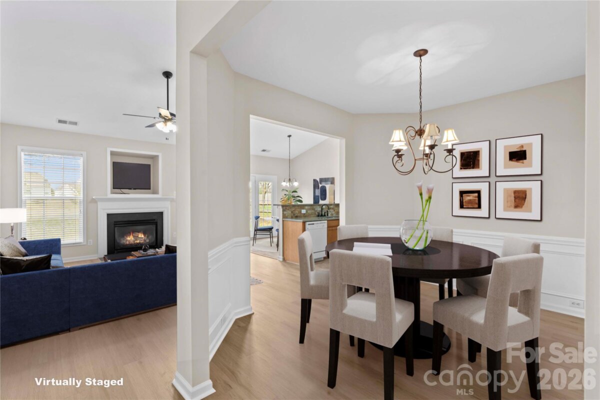 Welcome to a home that puts you at the center of the best Mooresville has to offer. Located in Morrison Plantation, this residence boasts unmatched walkability to Lowes YMCA, numerous popular restaurants and shopping centers, making daily life effortless with all right at your fingertips. Beyond the convenience, you'll be joining a community with resort-style amenities including a sparkling pool, community clubhouse, walking trails, multiple playgrounds and tennis courts. The home is a spacious 3-bedroom, 2-full bath ranch with a large upstairs bonus room, now featuring a total refresh for turn-key living. Step inside to find new LVP flooring throughout the main-level living area and a crisp, fresh, whole-home interior paint job. The heart of the home is the open and airy layout, featuring a vaulted great room warmed by a cozy gas log fireplace. The kitchen is both practical and stylish with solid-surface countertops, tile backsplash and an eating/serving bar, flowing perfectly into both the breakfast and dining areas. The main level hosts all three bedrooms. The primary suite features dual vanities, a walk-in closet and a thoughtfully updated shower designed for accessibility needs. Upstairs, the expansive bonus room with new carpet provides the flexible space you need for a media room, home gym, or spacious office. Outside, enjoy year-round outdoor entertaining in the large, & level backyard. Recent updates by owner include new flooring and paint throughout as well as a new Furnace in 2023. Unparalleled location & charm!