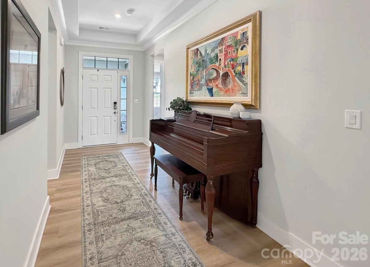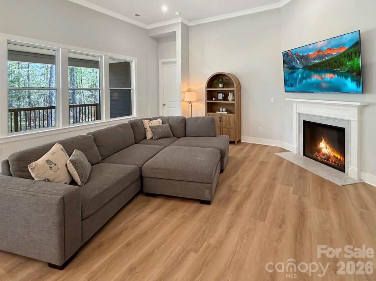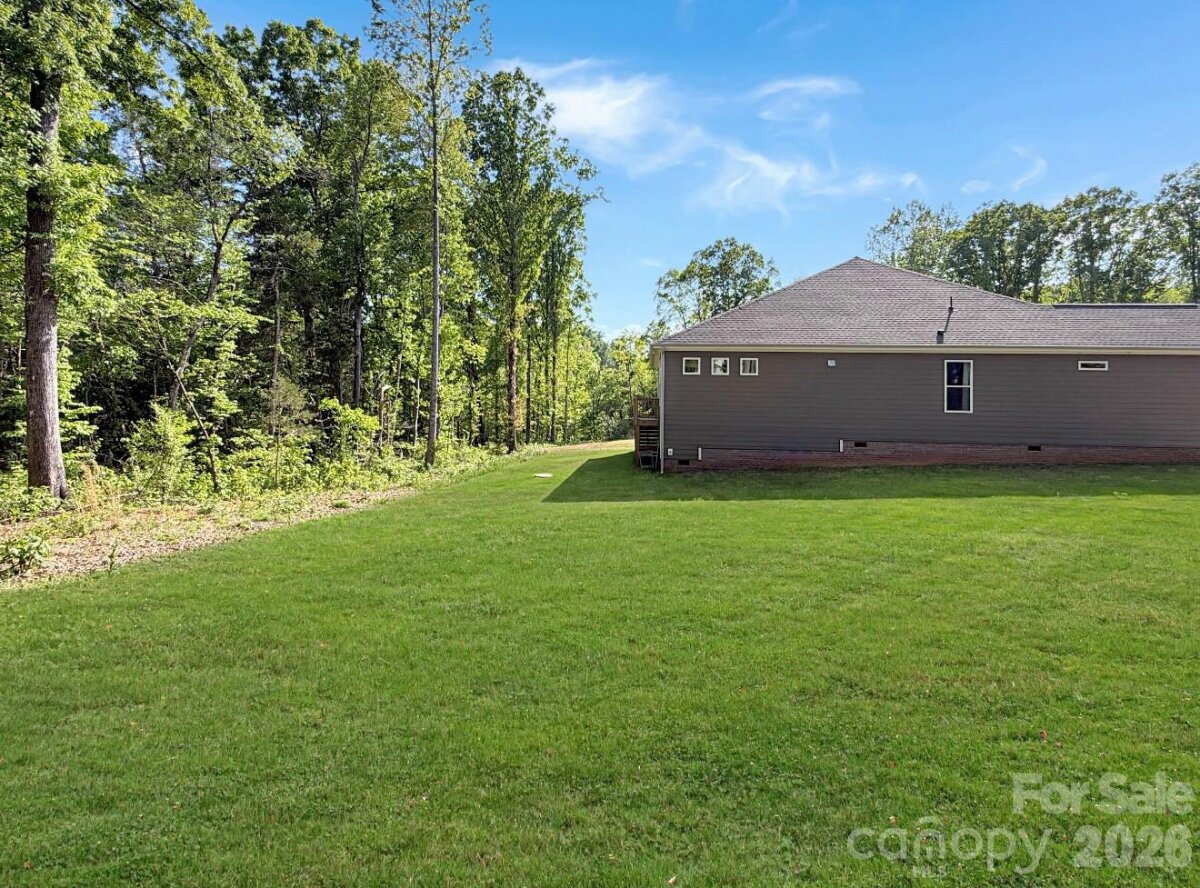 Almost new, beautifully upgraded 3-bedroom ranch with a versatile flex room, nestled on a serene wooded .73-acre homesite in the heart of Mooresville. Thoughtfully enhanced by the sellers with updated flooring and modern lighting throughout, this home blends style, comfort, and functionality. The gourmet kitchen features top-of-the-line appliances, abundant cabinetry, and a spacious pantry with custom shelving—perfect for everyday living and entertaining. The open-concept great room showcases soaring 12-foot ceilings and a cozy fireplace, creating an inviting and airy atmosphere. A flexible bonus space offers endless possibilities—ideal for a home office, guest retreat, playroom, or fitness area—tailored to fit your lifestyle. The laundry room includes a large storage closet for added convenience. Enjoy peaceful surroundings with a long driveway offering ample parking, all while benefiting from low Iredell County taxes and a prime Mooresville location close to everything.