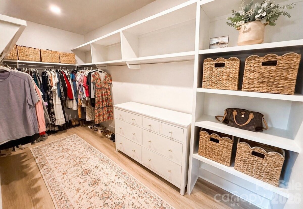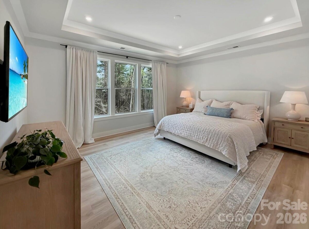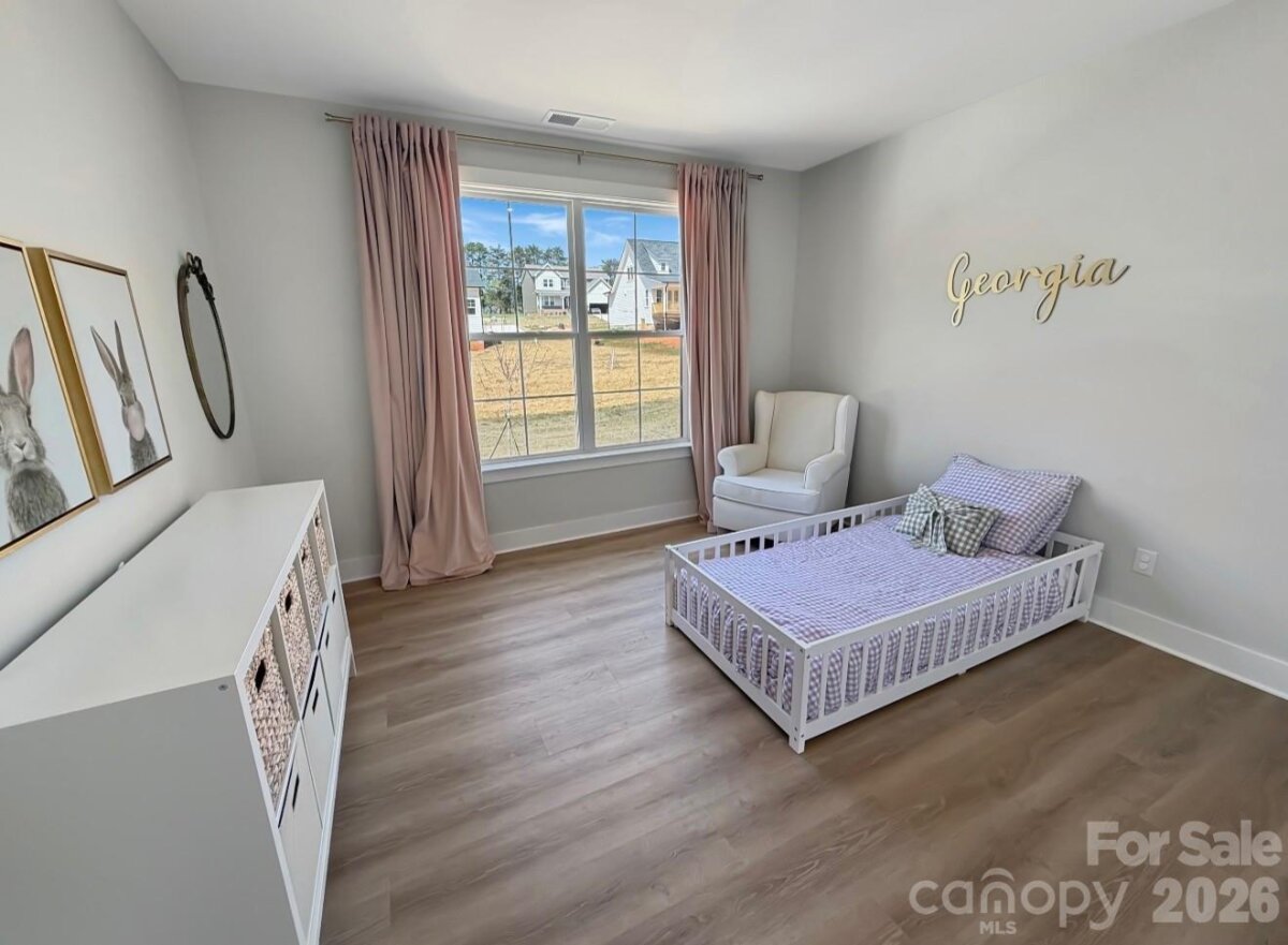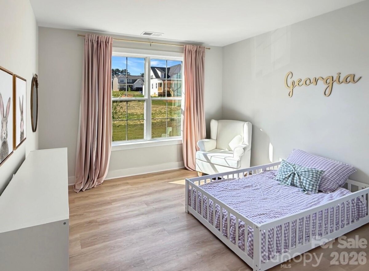 Almost new, beautifully upgraded 3-bedroom ranch with a versatile flex room, nestled on a serene wooded .73-acre homesite in the heart of Mooresville. Thoughtfully enhanced by the sellers with updated flooring and modern lighting throughout, this home blends style, comfort, and functionality. The gourmet kitchen features top-of-the-line appliances, abundant cabinetry, and a spacious pantry with custom shelving—perfect for everyday living and entertaining. The open-concept great room showcases soaring 12-foot ceilings and a cozy fireplace, creating an inviting and airy atmosphere. A flexible bonus space offers endless possibilities—ideal for a home office, guest retreat, playroom, or fitness area—tailored to fit your lifestyle. The laundry room includes a large storage closet for added convenience. Enjoy peaceful surroundings with a long driveway offering ample parking, all while benefiting from low Iredell County taxes and a prime Mooresville location close to everything.
