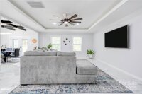 This beautifully crafted newer construction home offers the perfect blend of style, space, and functionality. Nestled on a spacious 1.68 acre lot, this 4-bedroom, 4.5-bath property features a smart open floor plan with designer finishes and attention to every detail. Enjoy a welcoming covered front porch and a spacious rear deck, and fire pit area, perfect for relaxing or entertaining. Inside, the light-filled layout boasts decorative lighting, neutral decorator colors, and high-quality finishes throughout. The chef’s kitchen is a showstopper, complete with quartz countertops, stainless steel appliances, a gas range, and abundant cabinetry—ideal for both everyday living and hosting. A main-level bedroom with ensuite bath offers flexibility for guests, in-laws, or a private office setup. Upstairs, each bedroom includes its own full bath, offering comfort and privacy for all. The laundry room comes equipped with washer and dryer to remain for added convenience. Located just minutes from Highway 74, this home provides quick access to local amenities while still offering the peace and privacy of a large lot. Don't miss this opportunity to own a move-in ready home with timeless style and modern functionality!