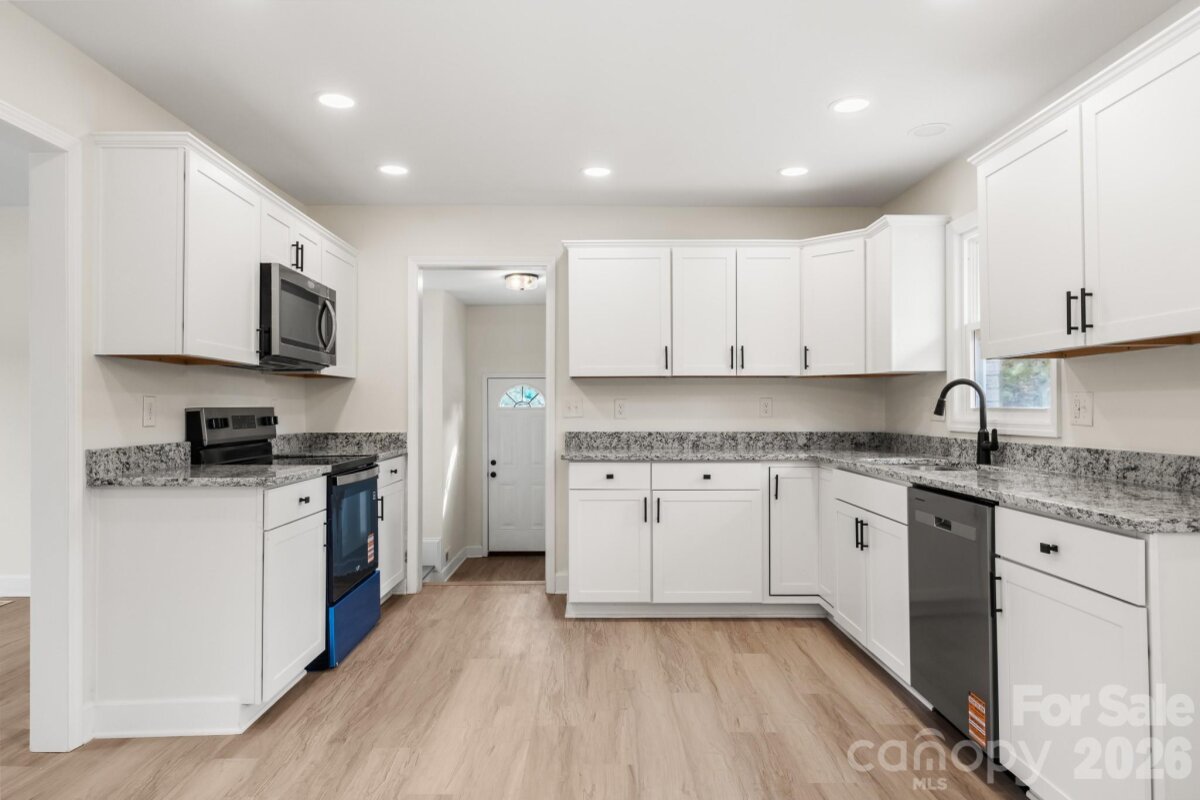 CUTE, NEWLY updated brick ranch ready for you to make it your home! This house sits on a GREAT, open lot! Walk into this gorgeous home onto NEW LVP flooring throughout the entire home. Great Room is spacious & features modern ceiling fan. Kitchen is AWESOME w/white shaker cabinets, granite countertops, SS Microwave, Stove, and Dishwasher. Primary suite hosts a modern ceiling fan, sizeable closet, and bathroom w/single granite vanity & tub/shower combo. 2 Guest bedrooms are ample in size and share the additional full bathroom w/single granite vanity & tub/shower combo. Additional room would be the perfect space for an office! This house has a lot to offer, come check it out!