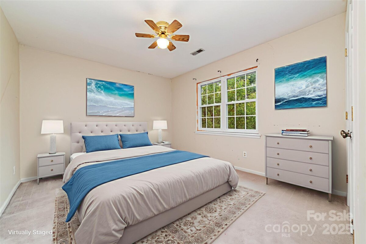 *1.5% closing cost credit with preferred lender* Nestled on a beautiful 1.15-acre lot in the sought-after Steeplechase community, this spacious two-story home with a basement offers tons of potential and room to make it your own. The main level features a large living room with a cozy fireplace, a formal dining room perfect for gatherings, and a bright kitchen with a breakfast nook that overlooks the backyard. Step outside to the expansive deck—a great spot for entertaining or simply enjoying the peaceful, wooded surroundings. Upstairs, you’ll find a generous primary suite with a tub/shower combo, plus two additional bedrooms and a full hall bath. The basement level offers a finished flex space ideal for a home office, playroom, or gym, along with abundant unfinished storage. The gently sloping yard leads down to a creek, providing a serene natural backdrop. According to the seller, the home is outside the flood plain, so flood insurance should not be required. With some repairs and updates, this home could truly shine — and it’s priced accordingly for those looking to invest in a popular neighborhood and solid home with character and space to grow.