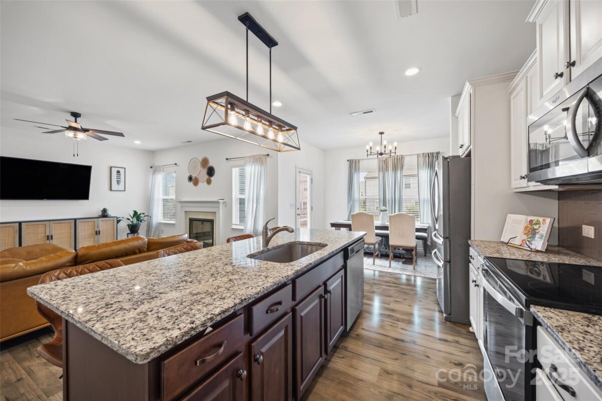 Welcome to this stunning two-story home featuring 3 bedrooms, 2.5 bathrooms, and a 2-car attached garage, built in 2022 and maintained in pristine, like-new condition. The spacious main floor is perfect for entertaining, with a seamless flow from the living room to the dining area and into the beautifully appointed kitchen. The kitchen features sleek stainless steel appliances, a large center island with bar seating, solid surface countertops, ample cabinetry and pantry, and stylish lighting. Upstairs, all three bedrooms are conveniently located on the same level, including a generously sized primary suite offering a peaceful retreat with a custom walk-in closet and a private en-suite bath. The primary bathroom is equipped with dual sinks, a large walk-in shower, and modern fixtures. Two additional bedrooms share a full bathroom with plenty of storage space. Also located on the upper level is a spacious laundry room. The attached 2-car garage offers secure parking and additional storage space. Set in a desirable, newer community with easy access to local amenities, parks, schools, shopping, and dining, this home offers a perfect blend of suburban comfort and modern convenience. With its turn-key condition, this property is truly move-in ready.