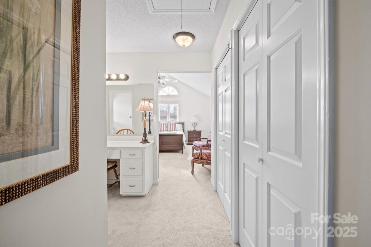 Lovely home in Hickory, conveniently located near shopping, restaurants, medical facilities, and schools! A 2-story tiled-floored foyer welcomes you and opens to a spacious living room offering custom plantation shutters with a dining room area, vaulted ceilings, and abundant natural light. The inviting kitchen features tile flooring, white cabinetry, a breakfast bar, a microwave, an electric range, a dishwasher, and a refrigerator (to remain). The kitchen is open to the spacious family room/den. The family room boasts a huge brick gas log fireplace with a remote for easy use and a walk-in pantry closet tucked under the stairs. A convenient mudroom off the den includes a laundry closet, coat/storage closet, and access to a half bath. Upstairs, you’ll find two bedrooms with a shared hall bath (tile floors), plus a LARGE primary suite with vaulted ceilings and a private bath offering dual sink vanities, generous closet space, and a walk-in shower. Nicely situated on a 0.29-acre lot (feels larger), this property offers a private backyard, back deck/patio for entertaining, & a nice storage shed. Additional features include a double garage, new carpet thruout, and a new roof installed in 2021. This home has been well-maintained and offers a fantastic location—don’t miss this great opportunity!