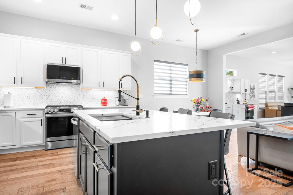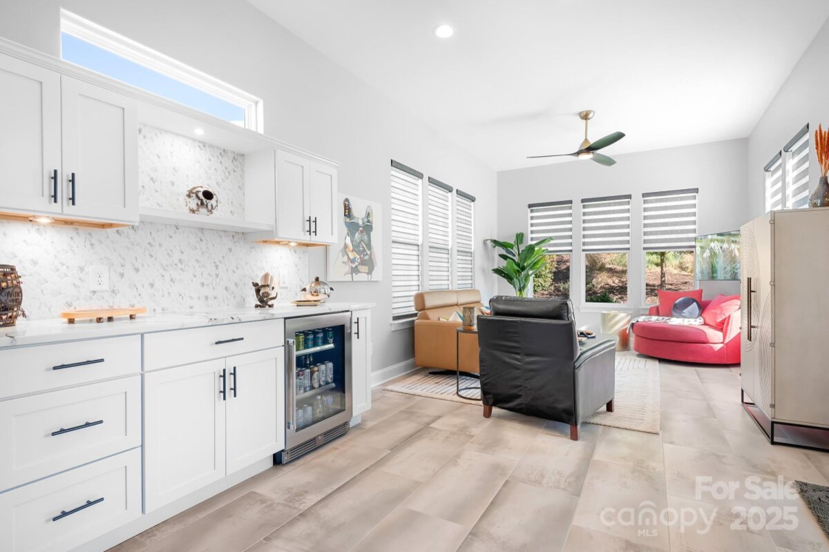 Beautiful Mature Large Private Flat Lot, Backing Up To The Natural Common Area With Added Privacy, Great For Watching Wildlife. Over $130,000 In Improvements Were Added The Last 3 Years. This Home Features 10 Ft. Ceilings, 8 Ft. Doors, Warm Engineered Hardwood Floors, Gourmet White Kitchen With Soft Close Drawers, Gas Stove, Quartz Countertops, Large Island W/Breakfast Bar, Refrigerator, Washer & Dryer Will Convey. Beautiful Built-In Electric Fireplace in Family Area, Large Tiled Sunroom with Bar/Mini Fridge For Entertaining. Spacious Master, Built-In Closets, Second Bedroom Has Built-In Wall Including Home Office. Laundry Room With Doggy Sink, Covered Front Porch & Beautiful Private Tiled Screened Back Patio With Retractable Screens. Patio With Gas Firepit. Extended 4 Ft. Car Garage. Outside of Home Just Painted. Irrigation. Looking To Move Fast, This Home Will Be For You. Enjoy The Award Winning Amenities, Freedom Boat Club On Lake Norman. Trilogy- A 5-Star Active Resort Community: Club House/Swimming Pools/Tennis/Pickle Ball/Restaurant & Bar/Nature Trails/Art Studio.