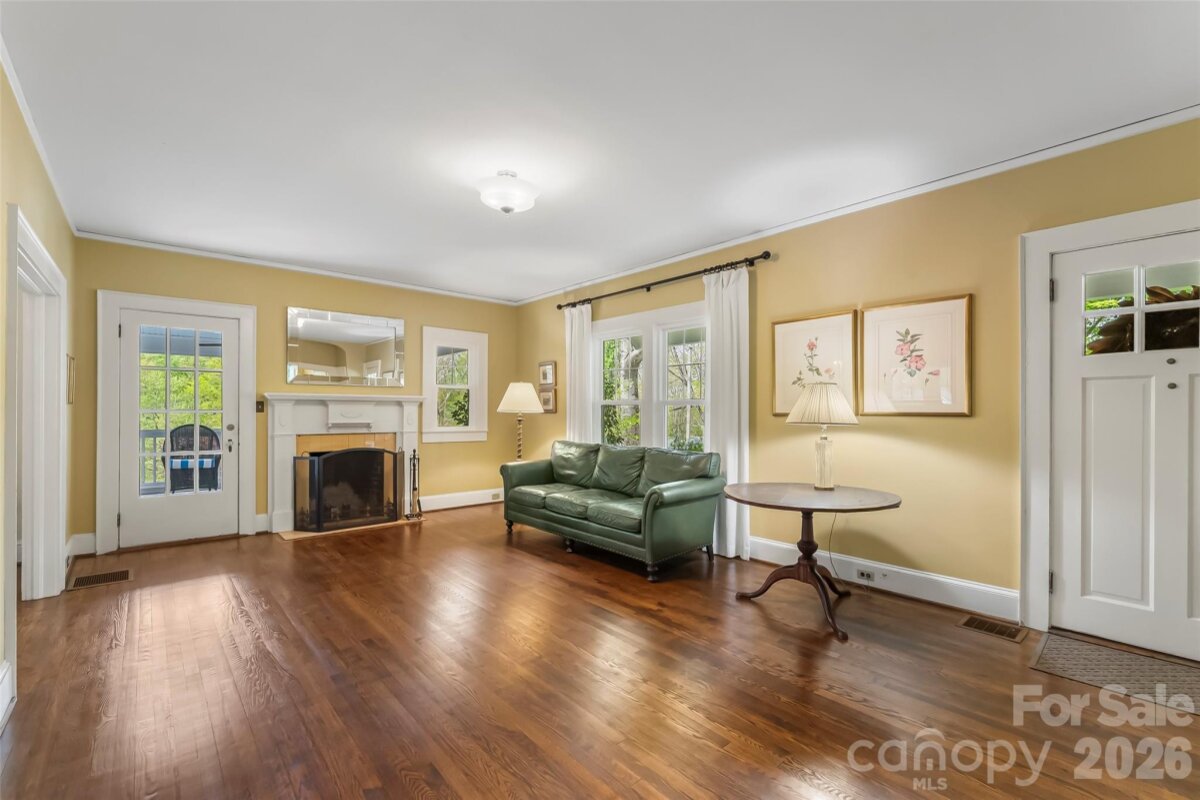 Discover a rare Morganton treasure — a beautifully maintained 1930s traditional home in the historic Riverside area, offering timeless character with thoughtful modern updates. This spacious residence boasts 6 bedrooms and 5.5 baths across more than 4500 sq ft, designed for comfortable everyday living and effortless multi-generational arrangements. Step inside to find classic period details and generous formal rooms: a gracious living room with a wood-burning fireplace, a formal dining area, and a den with fireplace that flows openly to an updated chef’s kitchen. The kitchen features a large island with gas cooktop, abundant cabinetry, and a wet bar with refrigerator drawers and an ice maker—perfect for entertaining. A bright breakfast room and convenient main-level laundry complete the family hub. The main primary suite is a peaceful retreat with a huge walk-in closet, large bath, and a charming bay window overlooking the beautifully landscaped backyard. There is also a second bedroom with ensuite on main. Upstairs offers a second primary suite with a gas-log fireplace and ensuite bath, three additional bedrooms that share a hall bath, plus a cozy office or playroom and a finished attic nook for quiet study or storage. The lower level expands living options with a large family/rec room or office, a kitchenette, full bath and direct access to a 2-car basement garage featuring maximum storage and a garden potting room—ideal for hobbies and overflow living. Outdoor spaces include a screened porch off the living room and an open deck off the den, surrounded by mature trees, established landscaping, and colorful flowering shrubs. Blending charm with modern conveniences, this home is perfect for growing families, multigenerational households, or anyone who appreciates historic character paired with contemporary functionality. Easy walk to downtown Morganton shops, restaurants and entertainment. Located between Charlotte and Asheville, Morganton is a quaint small town with charm & character.