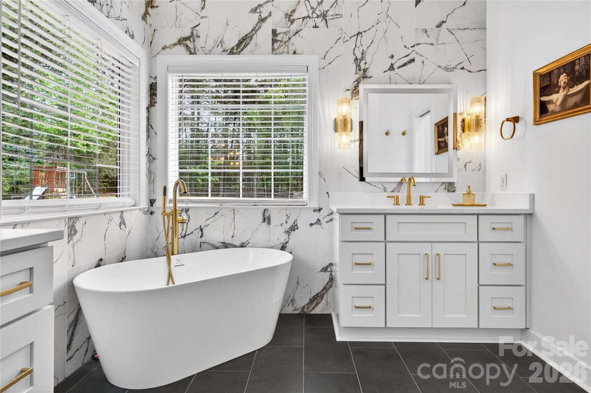 Welcome to your private retreat! This beautifully remodeled 4-bedroom, 2 full and 1 half bath home offers 2,789 square feet of thoughtfully designed living space on nearly an acre—with no HOA and unmatched privacy—located just one street away from stunning Lake Norman and Stutts Marina, and zoned for highly rated, top-tier Mooresville district schools. Completely gutted and renovated in 2025, this home feels brand new from top to bottom. Step inside to a stunning open floor plan featuring a show-stopping kitchen with oversized quartzite countertops, custom cabinetry, a designer range with pot filler, and seamless flow into the main living areas—perfect for entertaining and everyday living. The spacious primary suite is conveniently located on the main level and features a massive, spa-like bathroom with a truly breathtaking, award-worthy custom shower. Every detail has been upgraded, including all new flooring throughout, fully remodeled bathrooms, new interior doors, a striking iron front door, and a brand-new rear slider that opens to your outdoor oasis. Upstairs, you’ll find generously sized secondary bedrooms along with a large bonus room and dedicated office space—ideal for work, play, or hosting guests. Step outside and experience your own private “staycation†backyard—complete with a stunning custom pool, wooded surroundings, and peaceful views of a nearby golf course. With limited neighboring homes and serene natural privacy, this property offers a rare blend of luxury and tranquility. Additional highlights include a brand new roof (2025) and nearly an acre of land to enjoy.