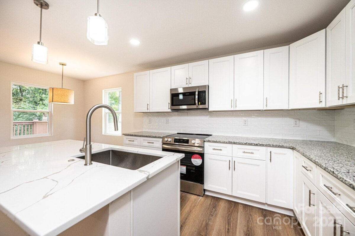 NEW CONSTRUCTION!!! Nestled in the charming town of HICKORY, this beautifully crafted single level home offers quality features throughout! A beautiful foyer opens to the thoughtfully designed open floor plan! Boasting stylish wide plank flooring in the main living areas and bedrooms, gorgeous fixtures, and a large deck to enjoy your morning coffee and cookouts! The custom kitchen offers a center island with bar seating, a tile backsplash, and gorgeous counter tops! The spacious owner's suite features an ensuite bathroom with a stunning tiled shower, dreamy vanity with dual sinks & 2 walk-in closets! Featuring 2 spacious guest bedrooms. One is located in the front of the house making it an excellent office space/bedroom. Large laundry room, too! You'll love the location of this one!! It's within minutes to Lake Hickory, shops, restaurants, Downtown Hickory's City Walk & more!! A must see!!