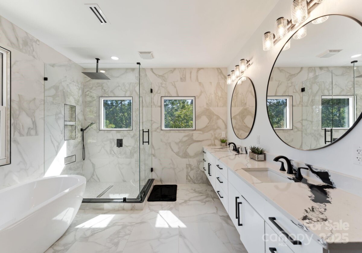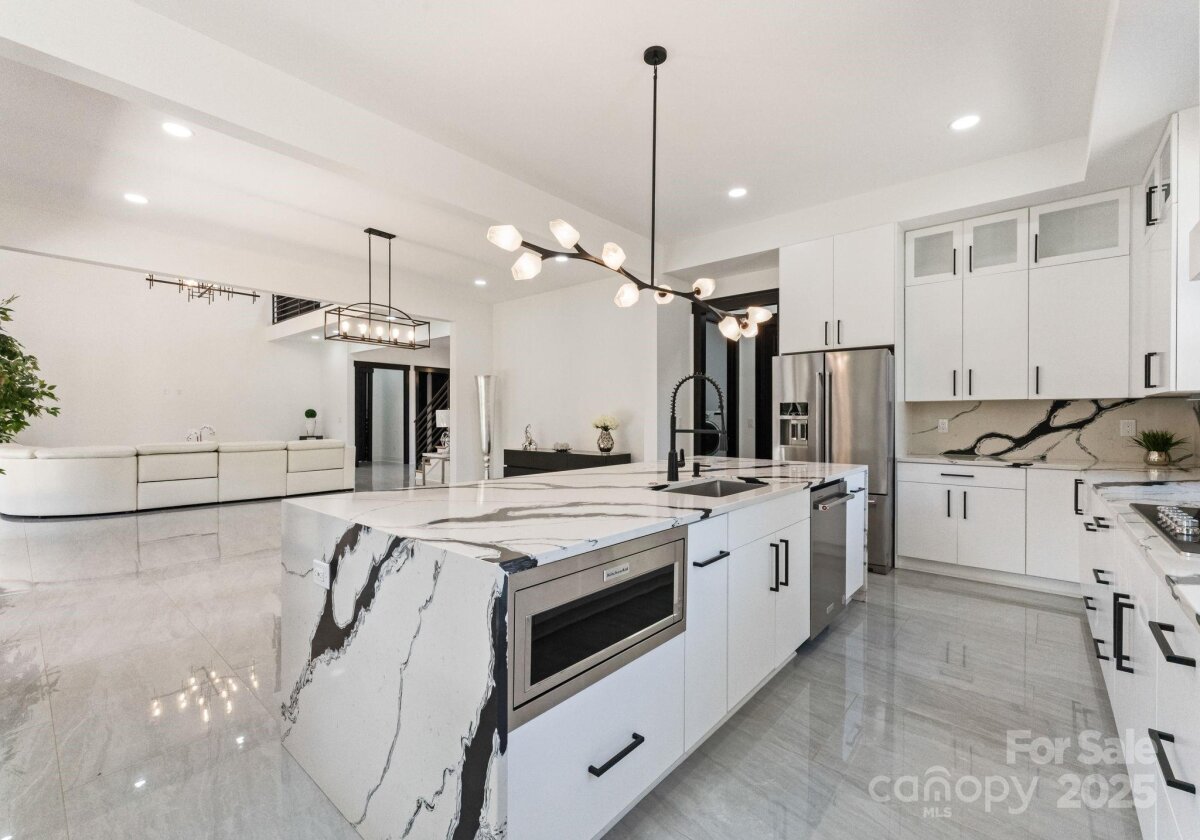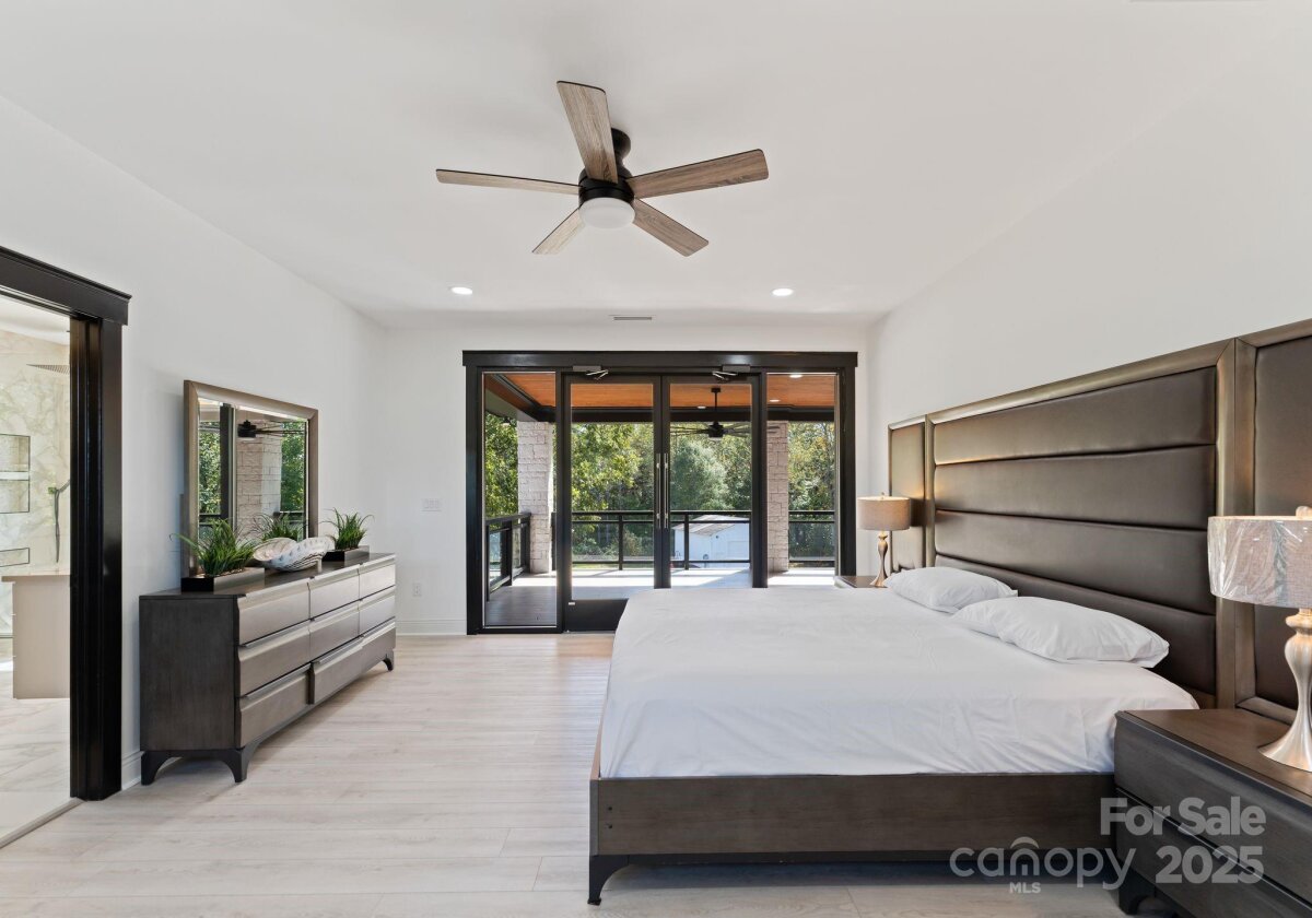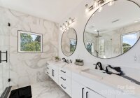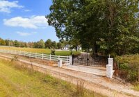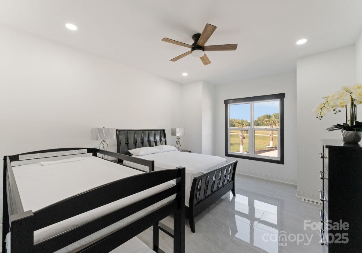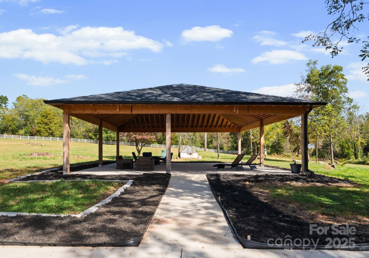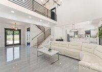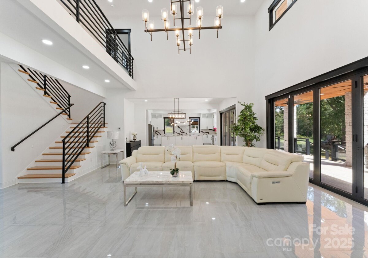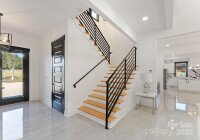 Built in 2023, this modern masterpiece sits behind a private gate on nearly 10 fully fenced acres. The home’s striking design features soaring ceilings, 8’ doors on the main-level, and a two-story living room with folding glass doors that open completely to the outdoors. The kitchen impresses with a sprawling island, beautiful quartz counters, and KitchenAid appliances. Two bedroom suites are on the main level, with the primary upstairs offering access to a huge balcony with sleek glass-metal railings. Spa-like baths feature rainhead showers and a freestanding tub. Outdoor living shines with multiple covered porches, and an oversized pergola—perfect for entertaining. Additional features include epoxy garage floors and a spacious workshop. A rare blend of design, privacy, and functionality on 9.9 serene acres just minutes from the growing I-40/I-77 corridor in Statesville.