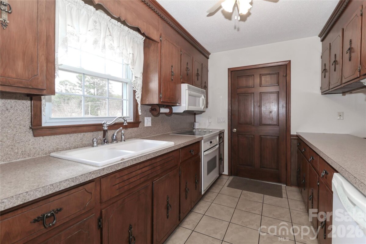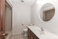 Great ranch home with full basement, Could easily be a second living space, workshop downstairs, Home is vacant and ready for occupancy, No HOA in this nice quiet neighborhood less than 6 miles to two golf courses - River Oaks Golf Course and Lakewood Golf Club, less than 10 minutes to 2 boat launches, Lake Norman and Lake Lookout, ranch home with open floor plan, kitchen has a flat top range and microwave hood, sink with a view to the pretty back yard, pantry, and sliding glass doors to the patio from the dining area, primary with ensuite which includes double sinks and walk in shower, 2 additional bedrooms on the main floor with a full bath in the hall way, 1500+ square feet in partially finished downstairs boasts a 2nd kitchen, gas log fireplace, rec room and large closet, as well as a full bath which includes the washer and dryer area, additional workshop area, game room area and 1 car garage opens to a patio at the side of the home. Partially finished basement has finished exterior walls. Main level 2 car garage has a closet and access to the front porch, kitchen and back driveway, large lot for gardening or hobbies. Information on fireplaces-upstairs chimney has been capped, downstairs gas logs in rec room/family room. Easy drive to Hickory and close to interstates.