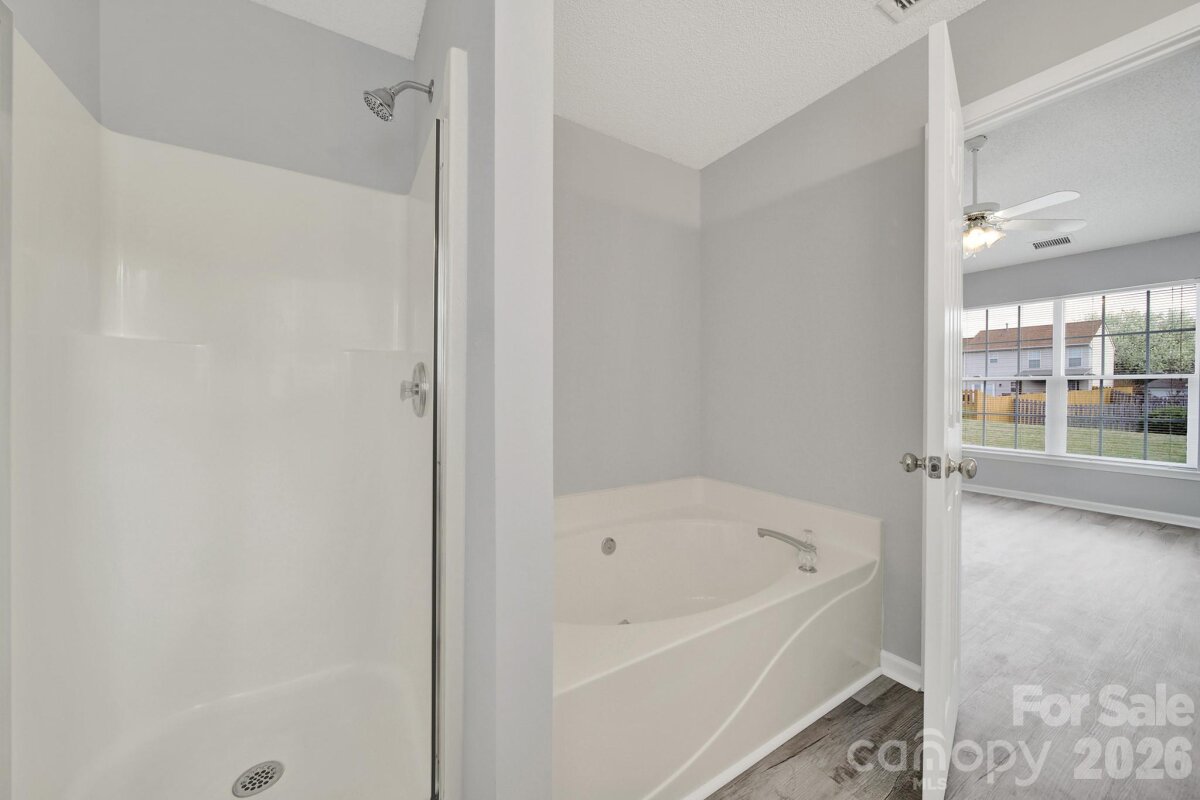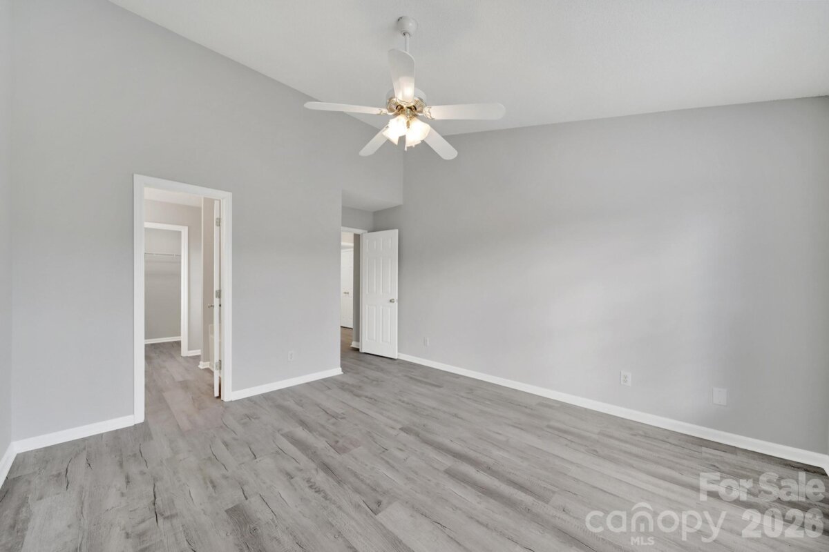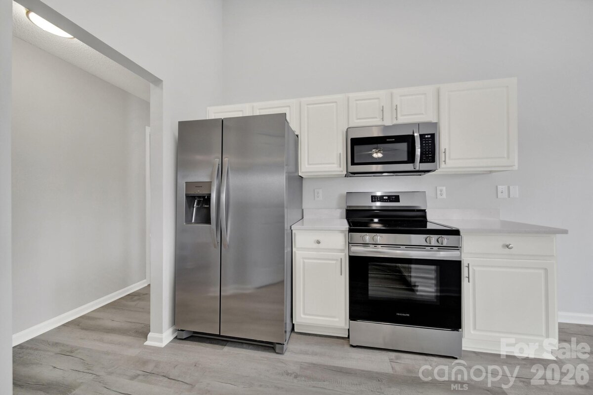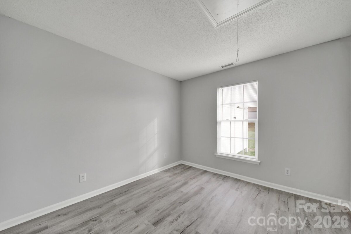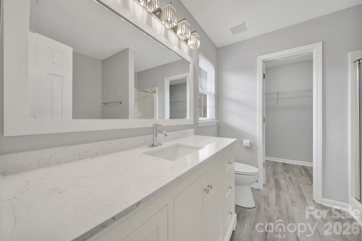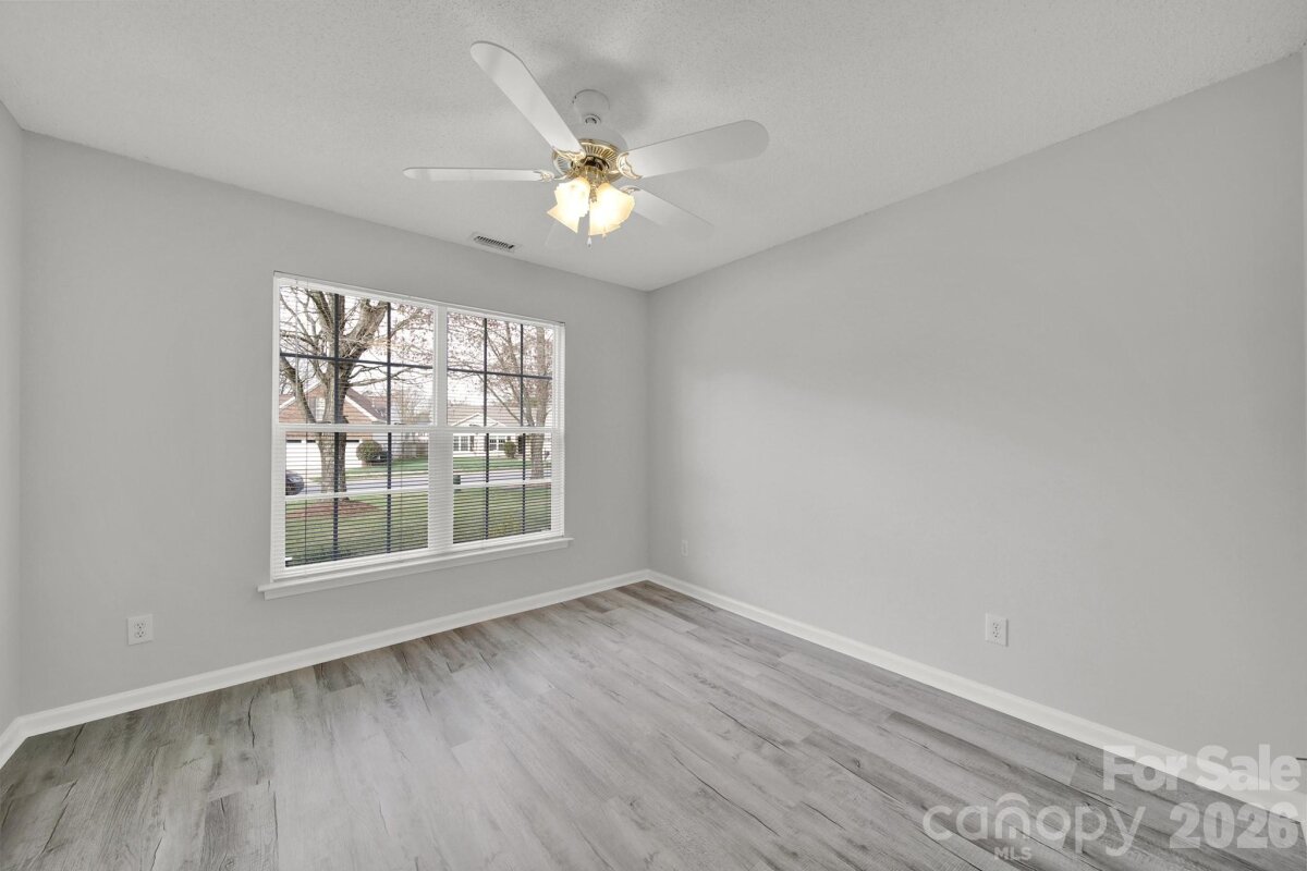 Welcome to this move-in ready, updated ranch in the Winborne community in Mooresville. Step inside and enjoy an open floor plan featuring fresh neutral paint, trendy lighting, stylish archways, and whole-home blinds. Kitchen features beautiful quartz countertops, stainless steel appliances, a self-cleaning range with a convection oven, pantry, breakfast bar, and adjacent breakfast area. Family room and dining room connect seamlessly, offering comfortable spaces to relax or entertain. Primary suite provides a peaceful retreat complete with new vanity, soaking tub, and separate stand-alone shower. Two additional bedrooms and laundry room add convenience and flexibility. Finished and painted two-car attached garage includes a utility sink and exterior access for added functionality. Enjoy the spacious, flat backyard with patio, perfect for outdoor living. Ideally located close to highly rated schools, vibrant downtown, and easy access to I-77.