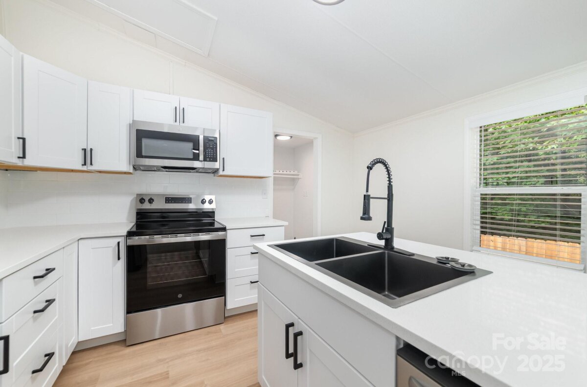 Enough of the Flips that Flop. Come see a remodel done the right way! Located in a private cul-de-sac in a great neighborhood (NO HOA), this home has been fully upgraded and is awaiting its new owner. As soon as you walk in the front door you'll notice the difference: brand new laminate flooring throughout the living room, kitchen and hallways. Fresh coats of paint on all walls and ceilings. All NEW WINDOWS with views of the private, wooded back yard. Completely remodeled kitchen with quartz countertops, new shaker cabinets and hardware, subway tile backsplash, new appliances, matte black dual basin kitchen sink and faucet. Bedrooms with fresh carpet and matte black ceiling fans. Primary bedroom with walk in closet and en-suite bathroom fitted with a double sink vanity, tiled standing shower and corner tub. Outside you'll notice the NEW ROOF, new gutters, fully fenced back yard and updated HVAC. Located within 2 miles of the Gastonia Social District, CaroMont baseball park and all the amenities. It's location, quality, and convenience at an affordable price!!! See it for yourself!