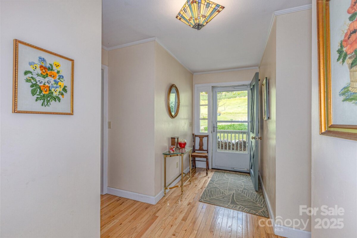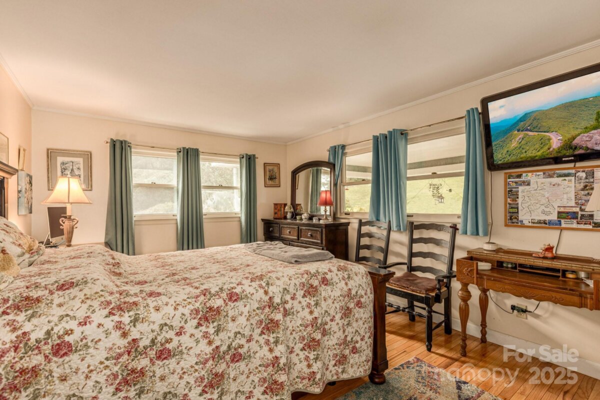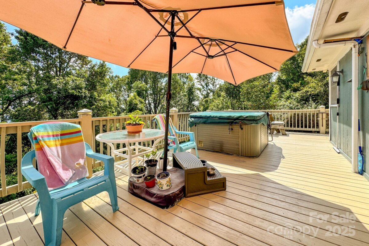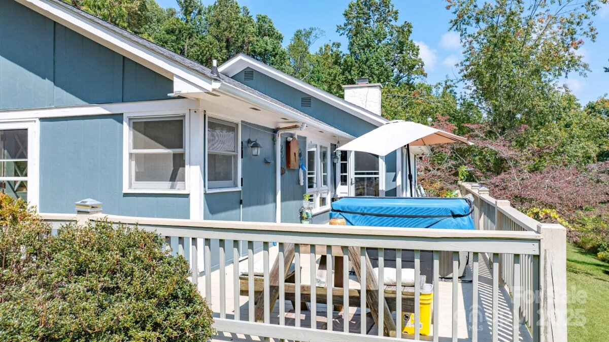 PRICE IMPROVEMENT! Don't miss this Charming Mountain Retreat with Modern Comforts! This beautiful home offers an inviting open floor plan with rich hardwood floors and a desirable split-bedroom layout—each bedroom featuring its own full bath. Ample windows let in streams of natural light, bringing the beauty of the outdoors inside. Cozy up by the wood stove on winter evenings, or step outside to enjoy the fresh mountain air on the wraparound deck—complete with a private hot tub. The yard flourishes in spring and summer, filled with colorful flowers, shrubs, and trees. Nestled next to the Blue Ridge Parkway, this property offers serene, peaceful living in a truly picturesque setting. Community amenities include paved roads, a shared water system, and underground utilities, ensuring comfort and convenience in a tranquil, natural environment.