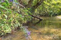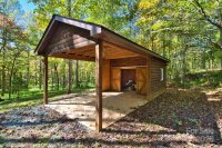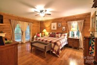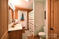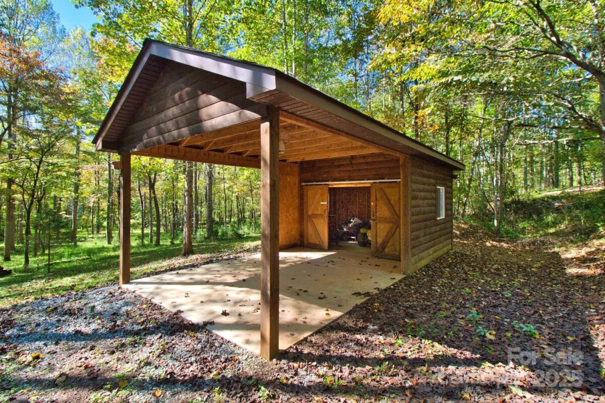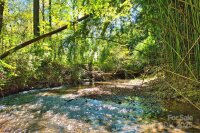 Sitting just below the road in Hearthstone Ridge, this two bed/two bath log cabin has only ever been used as vacation property! With 100' on Cathey's Creek, the genuine log cabin measures 1,232 sq ft of heated living space, all on one level. It's located on Lot 132 in Phase 4 of the gated Hearthstone Ridge community in Union Mills, NC, and enjoys a private setting, surrounded by vegetation. Not many properties offer such a beautiful parcel of land along with creek frontage. While much of the land is near-level and fertile ('bottom land'), the cabin sits high & dry with large porches, plenty of room for parking, and a great storage shed offering a covered work area behind the home. The cabin itself is equally beautiful. Built in 2015, it's not only practical in design, it's been well maintained. A vaulted ceiling in the great room keep this cabin spacious and open, while the split floor plan conforms to most buyer's wishes. The primary bedroom has french doors leading to the secluded, private back deck, and enjoys a large walk-in closet and en suite. The cozy great room is equipped with a gas fireplace, and hardwood floors are used throughout the cabin, except where ceramic tile is used on the bath floors. While the screen on the back porch was removed for the recent re-staining, new screen cloth would be an easy upgrade. The appliances will convey, and some of the furniture is negotiable. Hearthstone Ridge is five miles north of Rutherfordton, the seat of Rutherford County in western North Carolina. Featuring two gated entrances, the community sits just fourteen miles south of Interstate 40. From the more popular east entrance off US Hwy 221, you'll cross a charming one-lane bridge to enter the community.