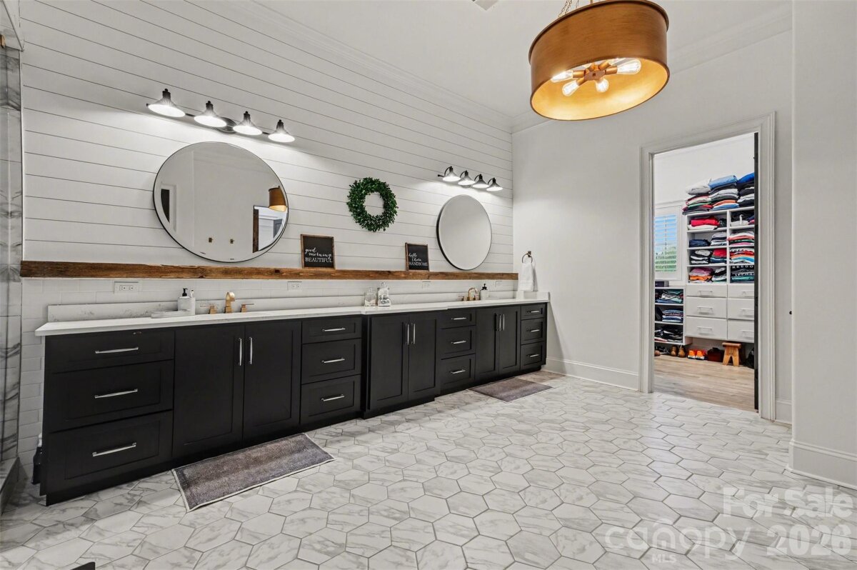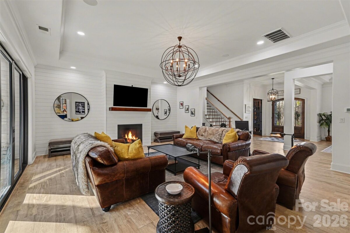 Experience refined living in this exceptional modern farmhouse, offering 5,669 square feet of luxury on a private 0.69-acre cul-de-sac lot. Thoughtfully designed with flexibility in mind, the home features up to six (6) bedroom spaces, each with its own ensuite bath (septic permit for four bedrooms), making it ideal for growing families and entertaining alike. From the moment you arrive, the striking stucco-and-stone exterior makes a lasting impression. Inside, soaring ceilings and abundant natural light highlight an open-concept layout anchored by a chef’s kitchen with Thermador appliances, gas cooktop, double ovens, oversized island, custom cabinetry, and a spacious walk-in pantry. Multiple living spaces include two dedicated offices, a media room with a custom wet bar, a large bonus room, and a versatile room over the garage, perfect for guests or additional living space. The primary suite is a private retreat overlooking the pool, complete with a spa-inspired bath and custom closets. Step outside to a true backyard oasis featuring a screened porch with fireplace, outdoor kitchen, heated pool and spa, and a fully fenced yard with convenient pool bath access. With smart home features, built-in audio, four garage spaces including a detached workshop, and premium finishes throughout, this home delivers both luxury and functionality in one of the Lake Norman area’s most desirable locations. Buyers Agents Welcomed!