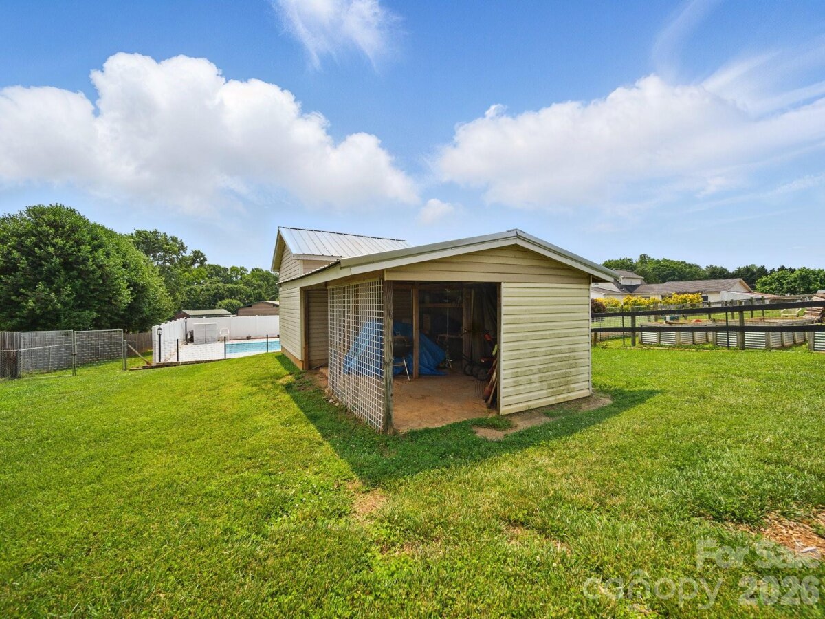 Luxury, flexibility, and thoughtful upgrades come together on this exceptional 1.07-acre gated property. From the moment you arrive, the gated entrance and expansive front porch welcome you with classic Southern charm, complemented by a convenient handicap-accessible ramp for easy entry. Inside, the home showcases beautiful LVP flooring, two cozy gas fireplaces, and a spacious layout designed for both comfort and functionality. A standout feature of this property is the separate living quarters with its own kitchen, creating the perfect setup for an in-law suite, multigenerational living, or extended guest accommodations while still maintaining privacy and connection within the home. Step outside to discover a true backyard retreat. The saltwater swimming pool and hot tub provide the perfect setting for relaxation or entertaining, while the pool house enhances the resort-style experience. The fully fenced yard offers both privacy and space to enjoy the outdoors, while raised garden beds create the perfect opportunity for gardening enthusiasts. The property also features multiple storage sheds, a double pole barn, and a dedicated RV enclosure, providing exceptional space for equipment, hobbies, vehicles, or recreational storage. Designed with efficiency and comfort in mind, the home includes solar panels, a tankless gas water heater, and fully encapsulated attic and crawl spaces, adding long-term value and energy efficiency. With its combination of luxury amenities, versatile living space, and expansive outdoor features, this property offers a rare opportunity to enjoy both privacy and functionality just minutes from town.