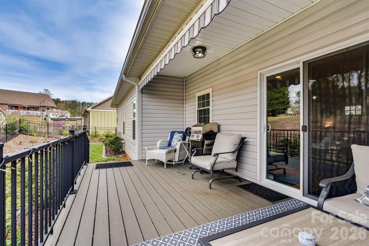 Welcome to this beautiful 3 bed/ 2 bath home nestled in the middle of the established Nottingham Estates! The open floor plan is enhanced by a vaulted ceiling in the living area and a cozy, gas fireplace with a custom mantle. The split bedroom layout ensures added privacy in the spacious primary suite complete with a walk-in closet, tiled shower with glass enclosure and a freestanding soaking tub. Two nice sized bedrooms flank the other full bath on the opposite side of the home with the kitchen and living area in between. Additional highlights include: hardwood floors in the main area, stainless appliances, custom cabinetry, granite countertops, an attached two car garage, which was built deeper than average, with attic storage above, Rinnai water heater, designated laundry room with cabinetry, a covered front porch and a back patio that was converted into a deck with Trex decking and a Sunsetter cover to provide shade on those hot, sunny days overlooking the beautiful fenced in back yard. This home blends style, comfort and functionality in a quiet and desirable community.