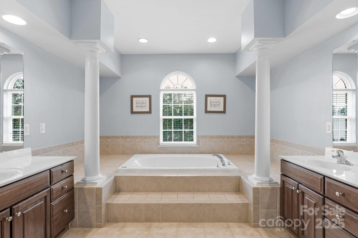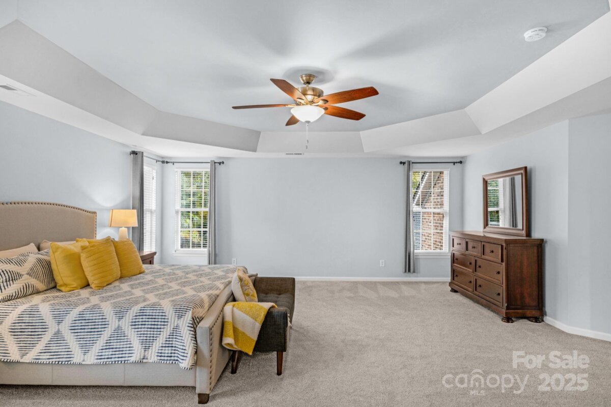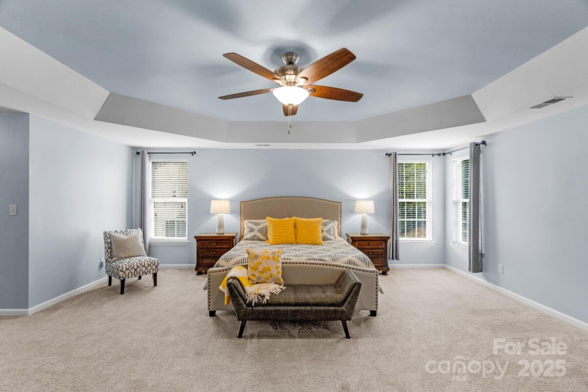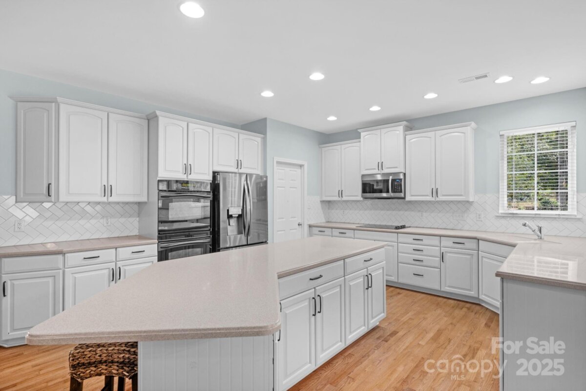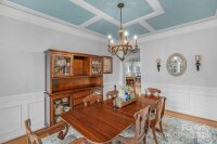 Welcome to this beautifully maintained 4-bedroom, 3-bath home offering over 4,000 square feet of thoughtfully designed living space. From the moment you enter, you're greeted by a dramatic two-story foyer with engineered hardwood floors that carry throughout the main living areas. A dedicated office with elegant French doors and a formal dining room with oversized windows fill the front of the home with natural light. The heart of the home is the two-story great room, featuring a cozy fireplace and open sight-lines into the spacious kitchen, which offers abundant cabinet storage, generous counter space, and a charming breakfast nook. Enjoy year-round comfort and views from both the sunroom and the oversized screened porch, perfect for relaxing or entertaining. The main level also includes a flex room and full bath, ideal for guests, multigenerational living or fitness area. Upstairs, you’ll find the bedrooms, including a generous primary suite with a luxurious en-suite bathroom and dual walk-in closets. Additional features include ample storage throughout, a 3-car garage, and a storage shed in the fully fenced backyard, all situated on a private cul-de-sac lot. Don't miss your chance to make this exceptional Mint Hill home yours!