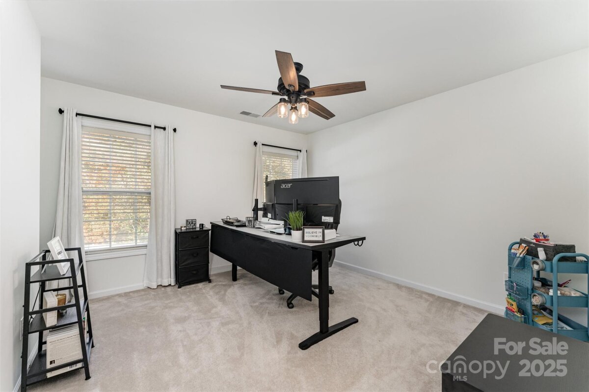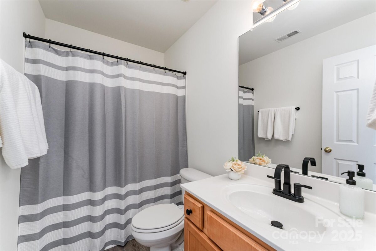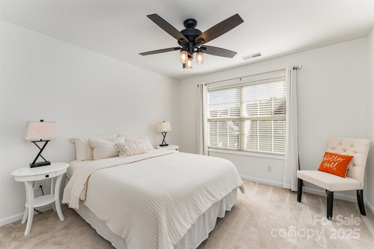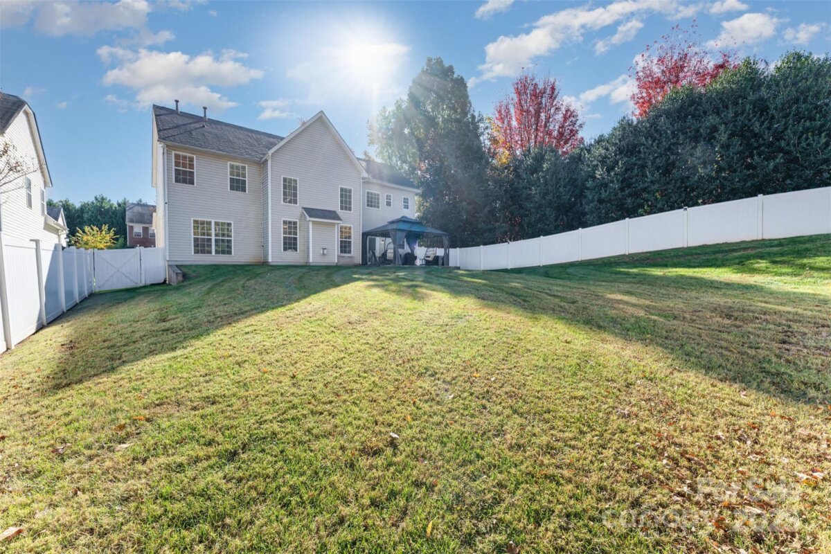 Welcome to this meticulously maintained 2-story home that perfectly blends comfort, function, and style—all in a prime location close to shopping, restaurants, and easy access to I-485. From the moment you arrive, you’ll notice the pride of ownership and thoughtful updates that make this home truly move-in ready. Step inside to find a bright and open floor plan designed for both everyday living and effortless entertaining. The 2-story great room immediately makes a statement with its soaring ceilings and abundant natural light, creating an inviting atmosphere that feels both spacious and warm. The freshly painted walls throughout the home provide a clean, modern backdrop that complements any style of décor. The spacious kitchen offers ample cabinet storage and counter space, flowing seamlessly into the breakfast area and great room—making it easy to cook, chat, and unwind together. A full bathroom and a guest bedroom on the main level add convenience and flexibility for visitors or multigenerational living. Upstairs, the primary suite is a true retreat with a private attached office or flex space. All 3 bathrooms feature brand-new luxury vinyl plank flooring, complementing the home’s fresh updates. With a total of 5 bedrooms and 3 full bathrooms, there’s plenty of room for everyone to live comfortably. Outside, enjoy your own private oasis. The fully fenced backyard offers privacy and space for play, gardening, or relaxing evenings. The expanded driveway provides added space and ease of access, while the newly paved walkway leading to the backyard adds both beauty and function. The freshly painted front door and shutters enhance the home’s curb appeal, creating a welcoming first impression. This home is apart of an amenity-rich community that offers something for everyone. Spend summer days at the Olympic-size pool or splash pad, enjoy a match on the tennis or pickleball courts, or let little ones play at the playground or kiddie pool. The clubhouse and fitness room provide even more opportunities for connection, recreation, and convenience—all just a short walk from your front door.