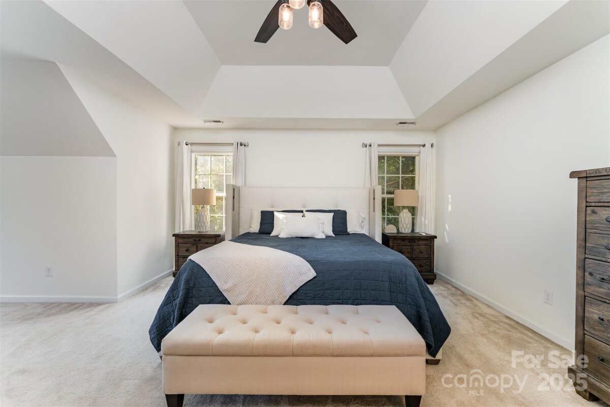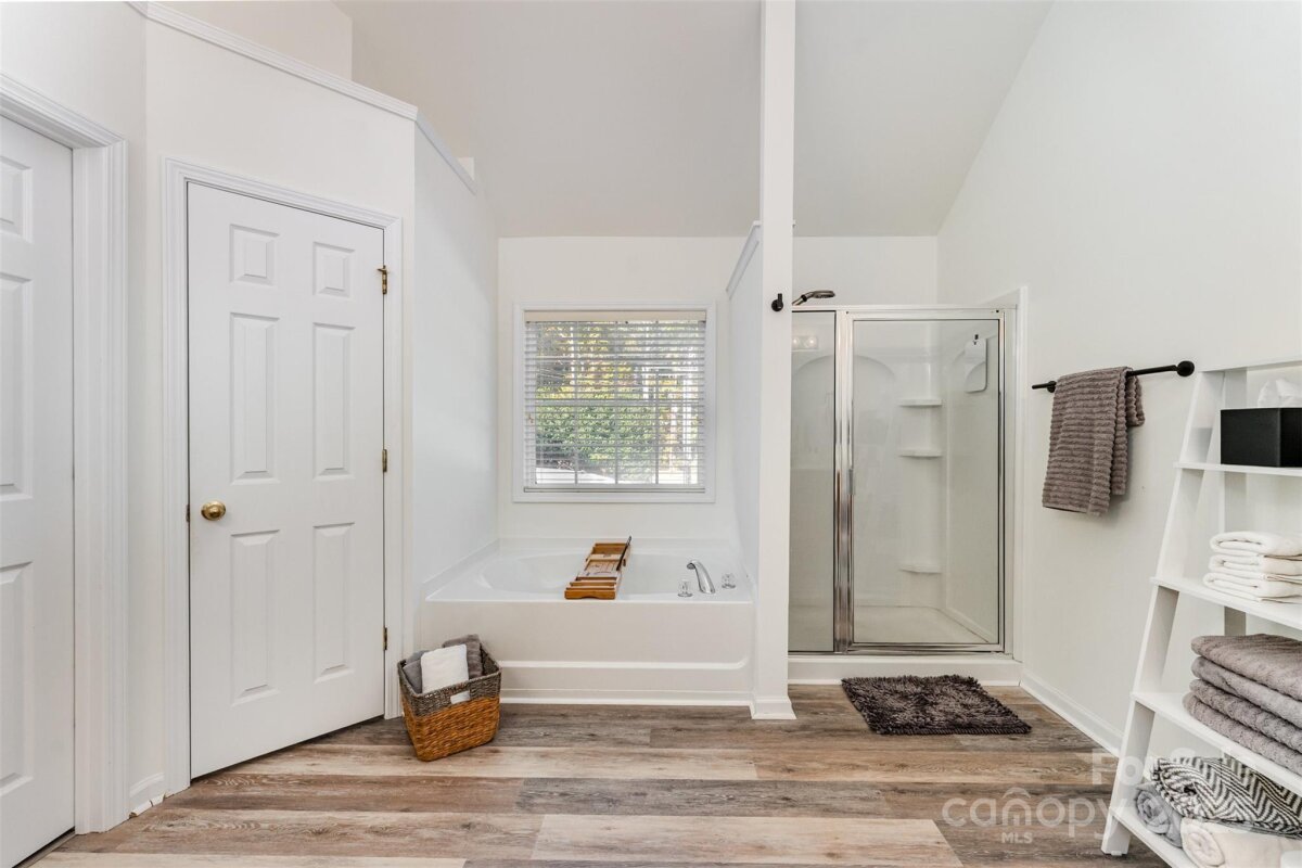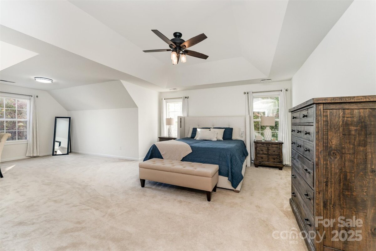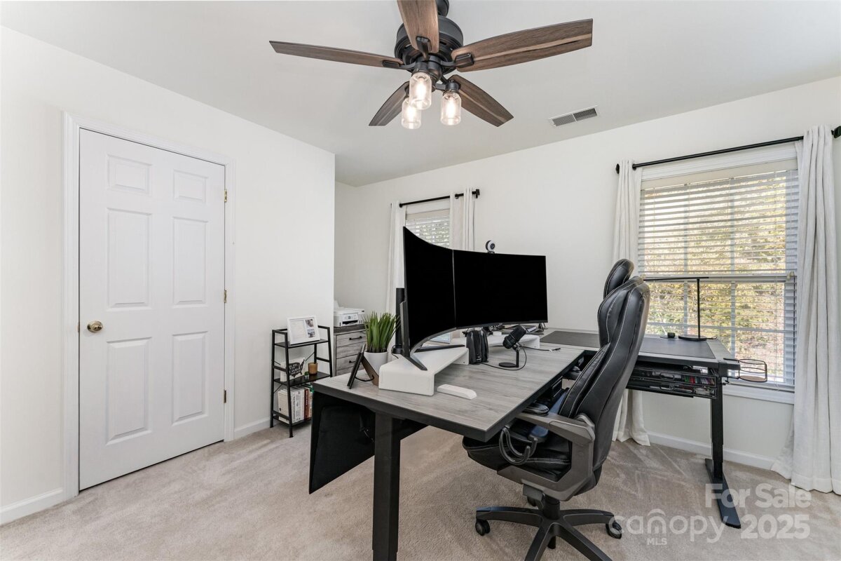 Welcome to this meticulously maintained 2-story home that perfectly blends comfort, function, and style—all in a prime location close to shopping, restaurants, and easy access to I-485. From the moment you arrive, you’ll notice the pride of ownership and thoughtful updates that make this home truly move-in ready. Step inside to find a bright and open floor plan designed for both everyday living and effortless entertaining. The 2-story great room immediately makes a statement with its soaring ceilings and abundant natural light, creating an inviting atmosphere that feels both spacious and warm. The freshly painted walls throughout the home provide a clean, modern backdrop that complements any style of décor. The spacious kitchen offers ample cabinet storage and counter space, flowing seamlessly into the breakfast area and great room—making it easy to cook, chat, and unwind together. A full bathroom and a guest bedroom on the main level add convenience and flexibility for visitors or multigenerational living. Upstairs, the primary suite is a true retreat with a private attached office or flex space. All 3 bathrooms feature brand-new luxury vinyl plank flooring, complementing the home’s fresh updates. With a total of 5 bedrooms and 3 full bathrooms, there’s plenty of room for everyone to live comfortably. Outside, enjoy your own private oasis. The fully fenced backyard offers privacy and space for play, gardening, or relaxing evenings. The expanded driveway provides added space and ease of access, while the newly paved walkway leading to the backyard adds both beauty and function. The freshly painted front door and shutters enhance the home’s curb appeal, creating a welcoming first impression. This home is apart of an amenity-rich community that offers something for everyone. Spend summer days at the Olympic-size pool or splash pad, enjoy a match on the tennis or pickleball courts, or let little ones play at the playground or kiddie pool. The clubhouse and fitness room provide even more opportunities for connection, recreation, and convenience—all just a short walk from your front door.
