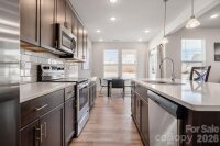Step into this stunning 1.5-story home designed for comfort, style, and effortless living. The luxurious main-floor Owner’s Suite offers true retreat living with dual walk-in closets, a spa-inspired garden tub, and a beautifully tiled separate shower. A second main-level bedroom and full bath provide ideal flexibility for guests or multigenerational living. You’ll love the soaring 9' ceilings, 42" cabinetry, expansive kitchen island, and sleek stainless-steel appliances—all flowing seamlessly into an open, inviting layout perfect for entertaining. A sophisticated flex room with solid French doors and a 4-square micro-tray ceiling adds the perfect touch of elegance, whether used as a formal dining room or private study. Upstairs, a spacious additional bedroom with its own full bath creates the perfect private getaway. Outside, the home features attractive masonry accents and a three-car driveway, offering both curb appeal and convenience. A covered back patio completes the picture, giving you the perfect spot to relax and unwind. This home delivers the space, upgrades, and style buyers are searching for. A must-see—homes like this don’t stay on the market long.