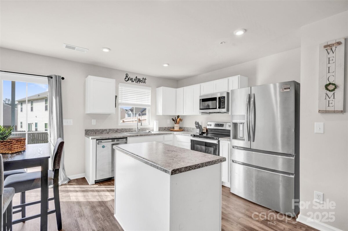 Welcome to this charming home located in the Pendleton community. Built in 2020, this well-maintained residence offers modern comfort and convenience throughout. The main level features a spacious living room, a convenient half bathroom, and a beautifully designed kitchen complete with white cabinetry, ample storage, and an adjoining breakfast area. A one-car garage and generous driveway provide plenty of parking. The fenced backyard offers an ideal space for outdoor activities, pets, or play. Upstairs, the primary suite includes a large walk-in closet and a full bathroom. Two additional bedrooms and a centrally located laundry room complete the upper level. Enjoy peace of mind with all major systems—including appliances, roof, and HVAC—just five years old. The home also includes a washer, dryer, and refrigerator for added convenience. Please note: The community requires a minimum lease term of one year.