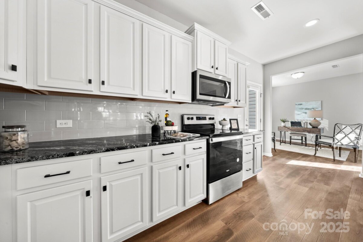 It's a "wow!" Come see this beautiful home on a huge corner lot in Troutman's popular Sutters Mill community! Venture inside for all the feels...from the open floor plan with lots of flex space up and down, to the warm and welcoming white kitchen with new light fixtures, a gorgeous granite island and stainless steel appliances. Also on the main level is a flex room that's perfect for an office or a cozy second living space. Upstairs is the generous primary en suite, complete with a large custom California Closet and oversized 2-head shower, plus two more bedrooms and a full bath, laundry room, AND a bonus loft area! Outdoors features a patio and large fully-fenced back yard with a new 8'x10' storage shed. Lots of room to run & roam in this yard! Such value here! Built in 2022, this home is like-new, including fresh neutral, updated paint throughout, an EV charger in the huge 2-car garage and a spacious driveway to easily accommodate family and friends. Just north of Mooresville and Lake Norman, Sutters Mill is just minutes from all the conveniences, yet feels tucked away in a friendly community you just may want to call "Home!" Enjoy the charm of Sutter’s Mill with sidewalks and green spaces, just minutes from Lake Norman, Troutman ESC Park, local dining, shopping, and I-77 for easy access to Mooresville and Charlotte.