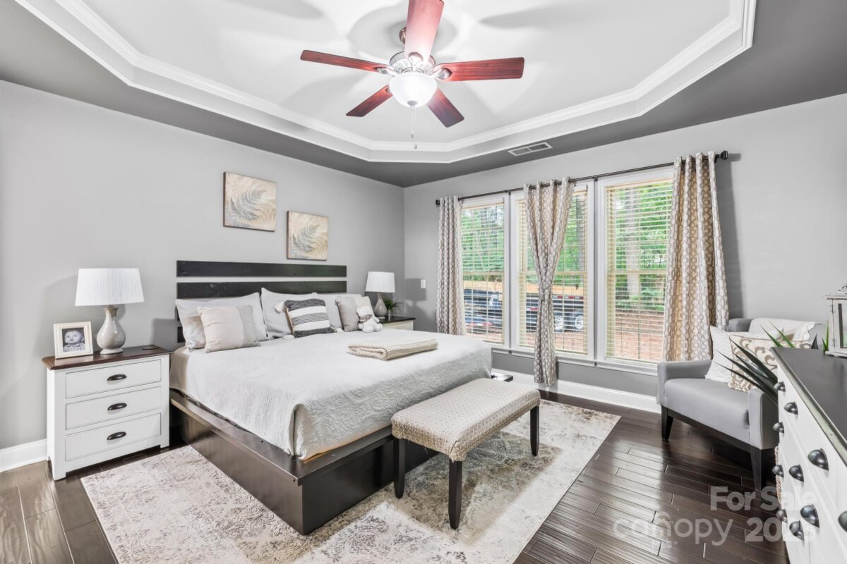 Welcome to your dream home, where elegance meets convenience. Located just minutes from I-77, this meticulously maintained residence offers both easy access to essentials and a peaceful retreat. The grand second-story foyer opens into a spacious living room filled with natural light from skylights. This home boasts three full bedrooms and bathrooms, including a luxurious main-level primary suite. An impressive loft catwalk overlooks the living room, adding airy charm. Outside, enjoy 1.27 acres of tranquility with private Trex and tile decks perfect for relaxation or entertaining. The insulated garage, equipped with hot and cold spigots, ensures convenient vehicle care year-round. Landscaping is professionally managed by Carolina Tree Doctors, who nurture all trees and plants. Plus, an irrigation system keeps the front garden lush and vibrant around the rock wall and deck. Discover the perfect blend of modern comfort and serene living. Schedule your visit today!