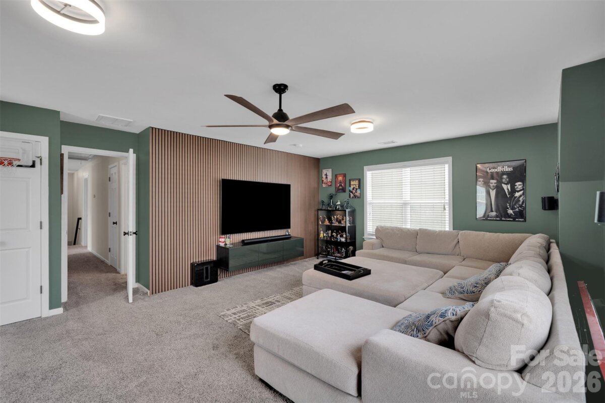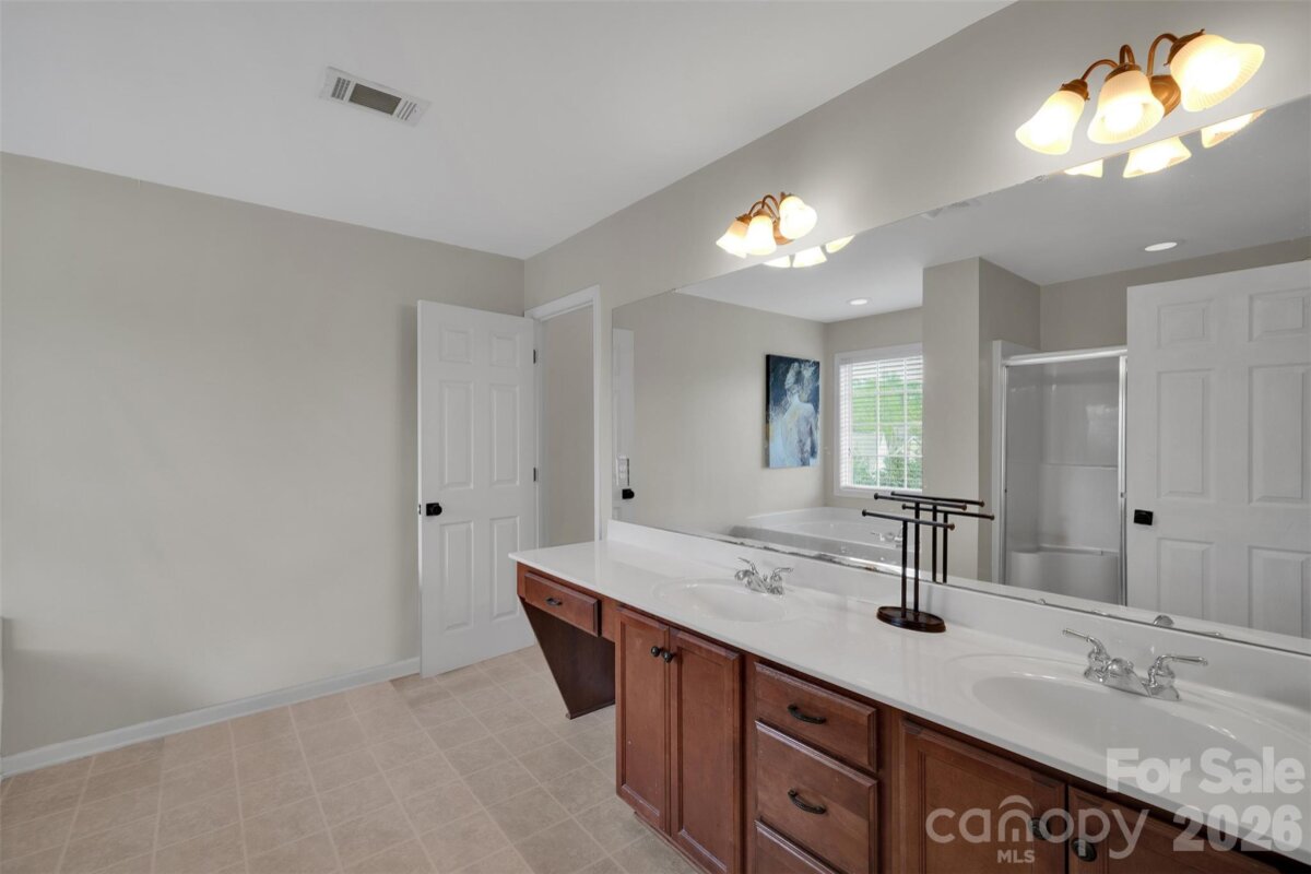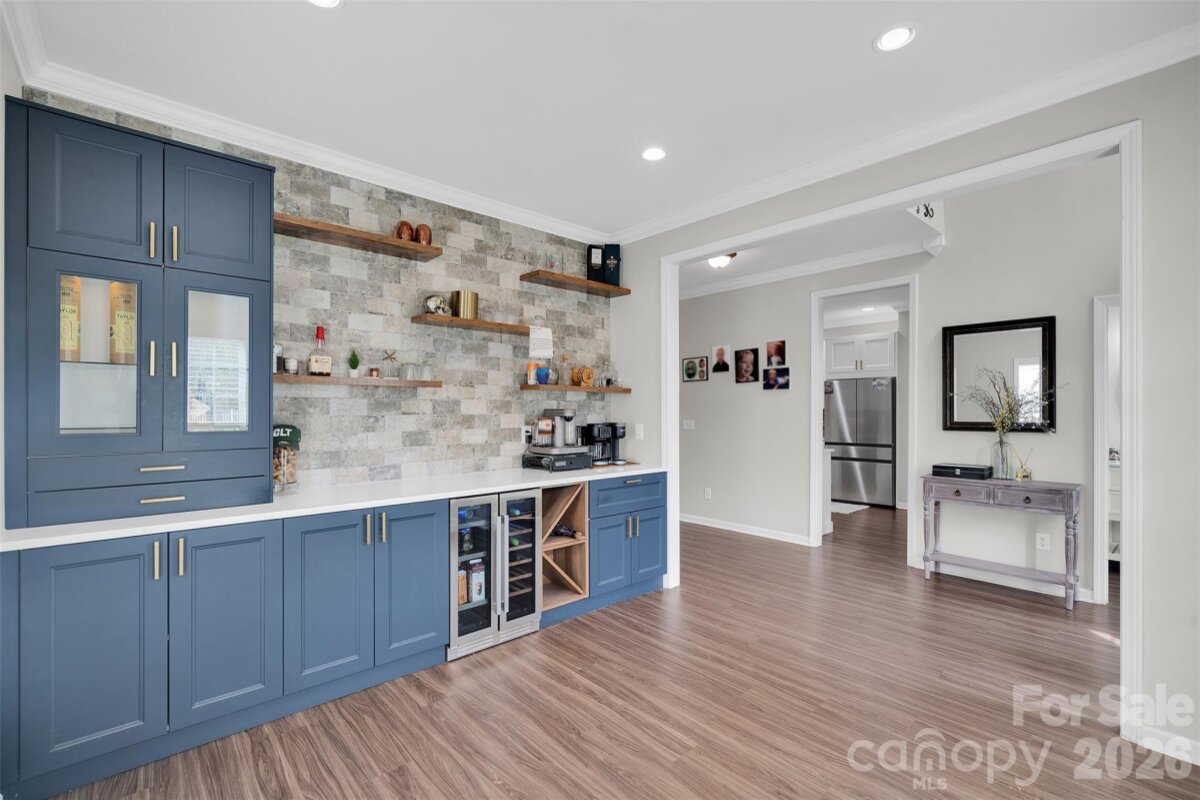 Located in The Hampshires, this home offers a functional layout, updated finishes, and flexible living spaces throughout. The main level features an open layout with abundant natural light and a seamless flow between the living area and kitchen. The kitchen has been updated and includes stainless steel appliances and quartz countertops. A newly updated half bath is conveniently located on the main level. A custom-built-in bar area with a beverage refrigerator, wine storage, and floating shelves. Upstairs, the primary suite offers generous space, a tray ceiling, a walk-in closet, and an en-suite bath with dual vanities, a soaking tub, and a separate shower. Additional bedrooms provide flexibility for guests or office space, with one additional full bathroom serving the secondary bedrooms. The upper-level bonus/living area creates an additional gathering space, ideal for media, recreation, or an additional bedroom.