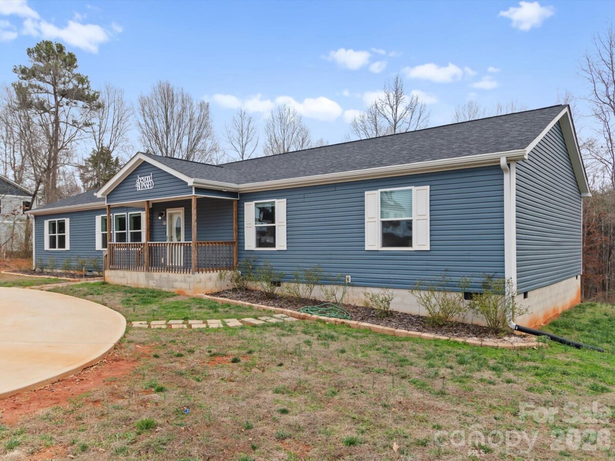 Welcome home to this beautifully updated 4-bedroom, 3-bath off-frame modular offering space, style, and functionality in all the right places. The home boasts a split BR design with the 4th bedroom being an ensuite. The large open floor plan and generously sized rooms throughout make this home designed for comfortable everyday living and effortless entertaining. The heart of the home is the expansive kitchen, featuring a giant center island with ample seating and prep space—perfect for gatherings, casual meals, or hosting friends and family. A walk-in pantry provides exceptional storage and convenience, while the open layout creates seamless flow into the main living areas. The spacious primary suite offers a true retreat with a well-appointed 4-fixture bath. The recently installed oversized shower/tub combination with a beautiful glass enclosure makes a stunning statement while adding everyday luxury. It’s both elegant and functional, ideal for busy mornings or relaxing evenings. All four bedrooms are generously sized, offering flexibility for guests, a home office, or hobbies. A large, charming walk-in storage closet, almost considered a dedicated storage room, features custom wooden shelving and offers outstanding organization and storage options rarely found in similar homes. Extensive improvements completed in 2025 make this home truly move-in ready and add lasting value, including: brand-new top-of-the-line luxury vinyl plank flooring; an oversized custom shower/tub with glass enclosure; a two-part range oven; new exterior doors and screen door; a new water heater with booster tank; and updated gutters and drainage. Step outside to enjoy the private backyard from the wooden deck—an ideal spot for morning coffee or evening gatherings. A separate storage shed provides convenient space for lawn equipment, tools, and additional storage needs. In the front, a circular drive enhances both curb appeal and convenience, offering easy access and ample parking for residents and guests. With its open layout, oversized kitchen bar, thoughtful storage solutions, and significant recent upgrades, this home delivers space, quality, and modern finishes in one complete package. Schedule your showing today and see all it has to offer.