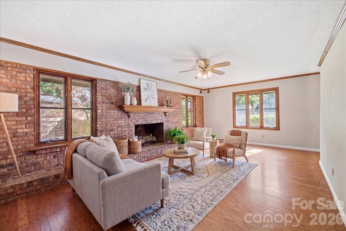 Fantastic opportunity in a prime location! Refreshed charming brick home in a quiet & established neighborhood. Minutes from growing downtown Kannapolis, Atrium Health Ballpark, Afton, Village Park & new Lowes Foods. Boasting 3 bedrooms and 2.5 bathrooms with the character you want—heavy ornate trim & molding throughout. Spacious primary suite with a large bathroom: soaking tub, shower, expansive vanity, private water closet, & three closets with built-ins for ample storage. Large dining room, sitting room, AND living room with flexibility for design and decor. Sits on a lovely lot with mature trees and gardens, offering a serene outdoor space. Additional storage with a storage room attached to the house and separate storage building in the rear. Convenient parking with driveways off both Berkshire & Roger’s Lake. Plus, with no HOA, you have added flexibility & freedom. Recent 2023 additions: Professional paint, fully fenced yard, engineered hardwoods, carpet, tile flooring, & appliances.
