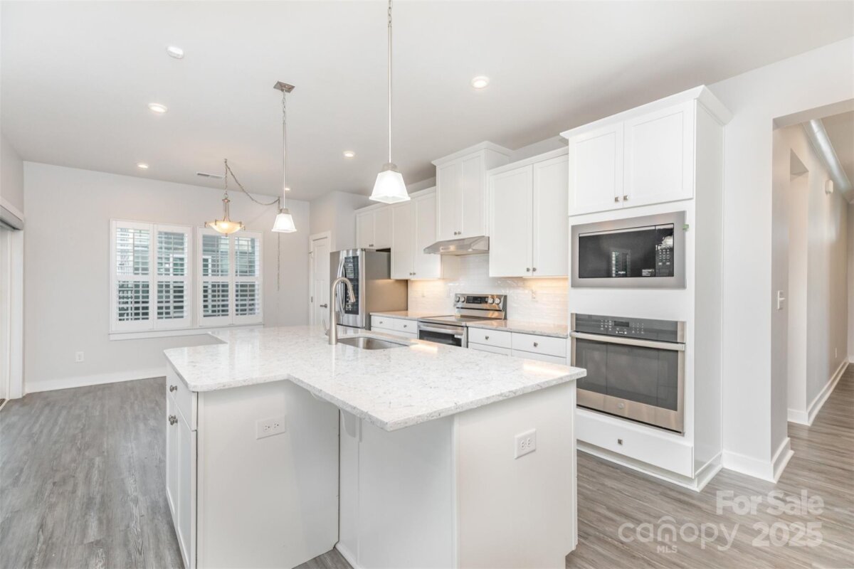 Welcome Home to Comfort, Convenience, and Style! This isn’t just a house—it’s a lifestyle. Enjoy true low-maintenance living with included lawn care and access to a resort-style community pool, clubhouse, and scenic walking trails. Running daily errands is effortless with Wesley Chapel Village Commons only minutes away. Step inside and feel instantly at ease. The bright, open-concept main level is designed for modern living, featuring a chef’s kitchen with coffee bar, upgraded countertops, new stainless steel appliances, and a spacious island that flows seamlessly into the dining and family rooms. The first-floor Owner’s Retreat offers the perfect escape, complete with a spa-inspired bath and a generously sized walk-in closet with closet system. A second bedroom, full hall bath, and a versatile flex room—ideal for a home office, formal dining, or library—make this level as functional as it is inviting. Upstairs, a roomy loft, third bedroom, and full bath provide even more space to relax, work, or host guests. Outside, unwind on the extended covered porch overlooking the fully fenced yard with additional trees—your private haven for morning coffee, weekend grilling, or simply enjoying the outdoors. Premium features like Hardie Plank siding, LVP flooring in the main living areas, and tile in all wet spaces deliver style, durability, and ease of care. Don’t just purchase a home—embrace a carefree, active lifestyle in a place that truly has it all. Schedule your private tour today and fall in love with where you live!