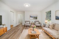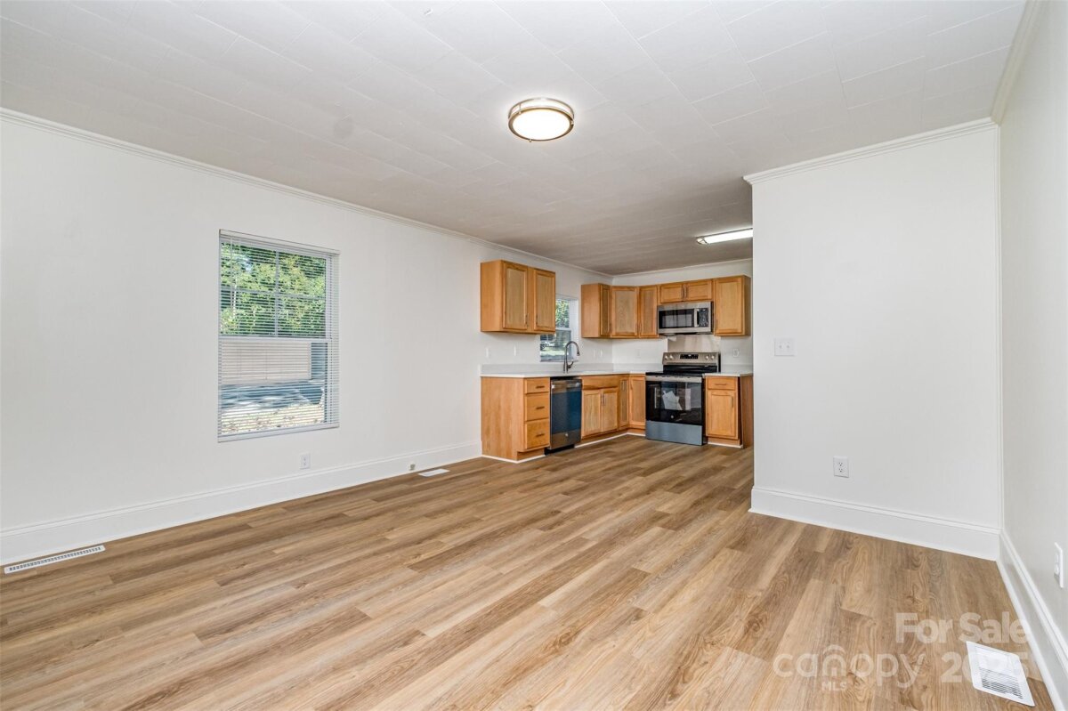 Fully remodeled 3 bedroom 2 bathroom ranch style home in the heart of it all! Home is located just steps from the 8th Street / Bakers Creek Greenway in Kannapolis, part of the Carolina Thread Trail that leads past the playground and Village Park Splash Pad & concert area to the beautiful new city hall area and the Kannapolis Cannon Ballers baseball stadium! Also just 1/2 mile from Research Campus & all the local shops & restaurants of Downtown Kannapolis. Welcome in past beautiful covered front porch overlooking Bakers Creek Park w/ tennis, volleyball & basketball courts into the fully renovated interior. All additions & renovations are permitted and up to code. Dual bedrooms welcome you on each side as you enter into the open living & kitchen area. Natural looking vinyl plank flooring flows throughout while 2 of the 3 bedrooms retain their original hardwood flooring for added historical charm. Kitchen has Beautiful neutral wooden cabinets with matching S.S appliances and hardware. Spacious laundry area and back entrance room provide an extra nook for space. Primary bedroom has spacious attached full bath with beautiful natural green vanity and built in storage. Full hall bath off of kitchen perfect for guests. Incredible front and back yard space allow you the option to create your own outdoor paradise plus newly paved asphalt driveway provides protected parking. If a stunning remodeling historic home in and unbeatable location is what you're looking for, look no further!