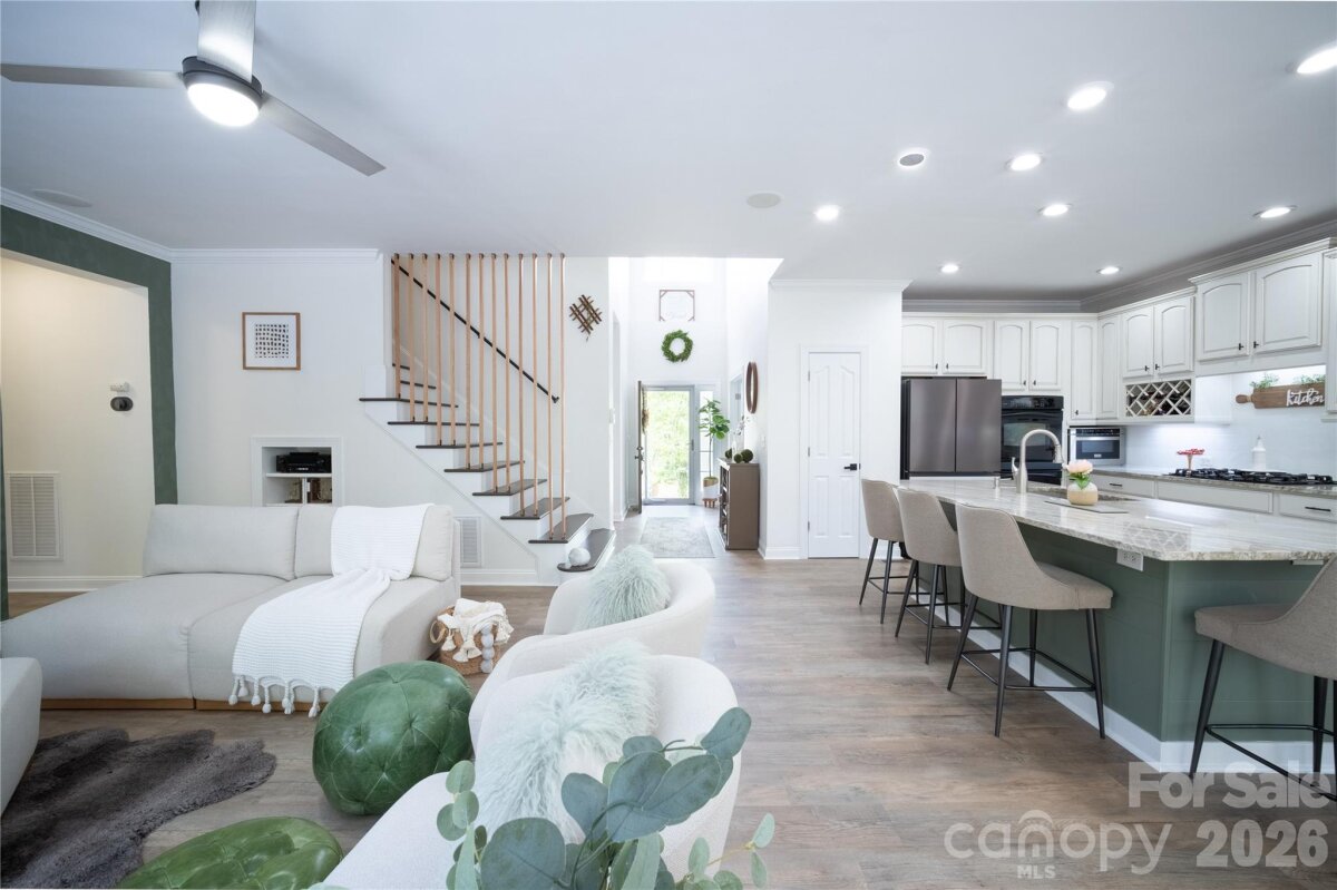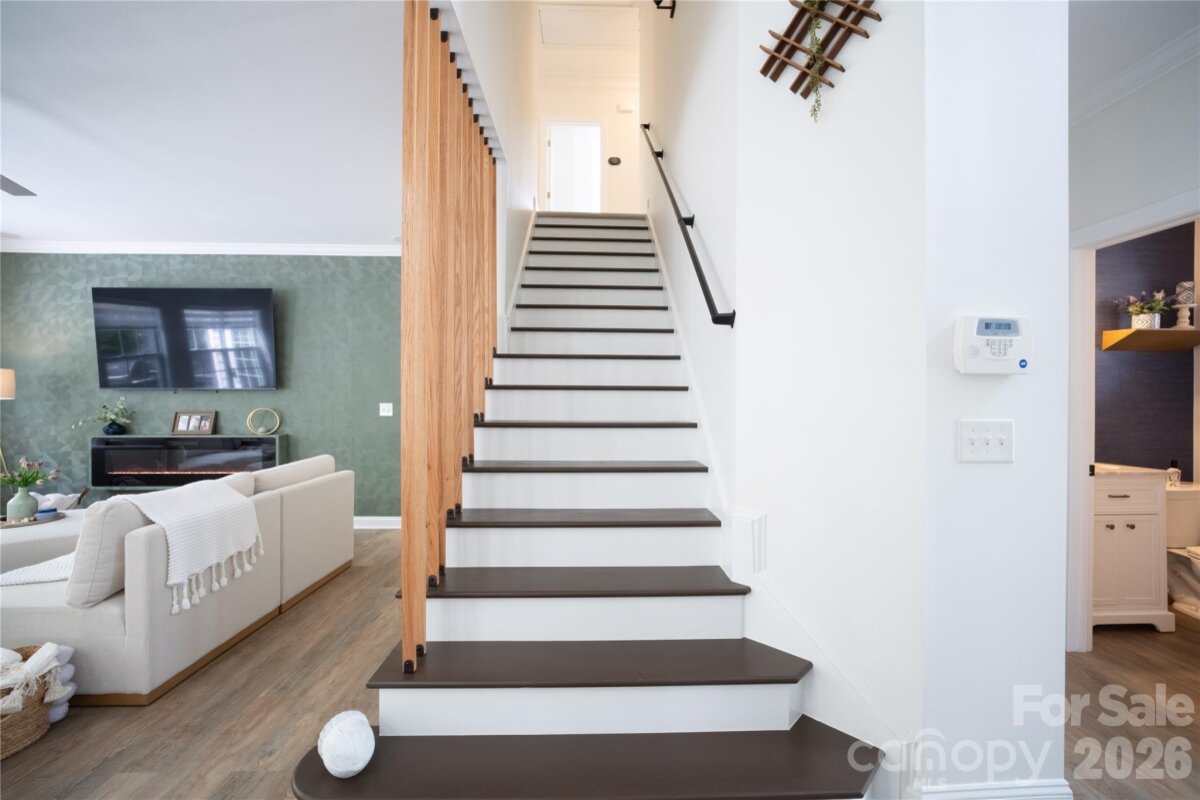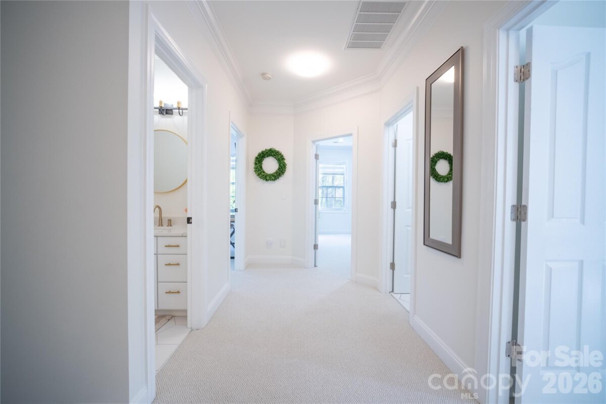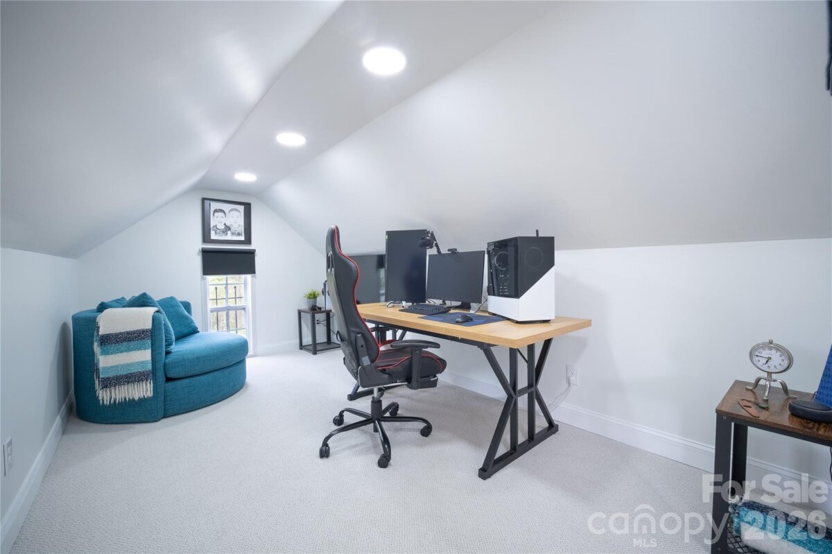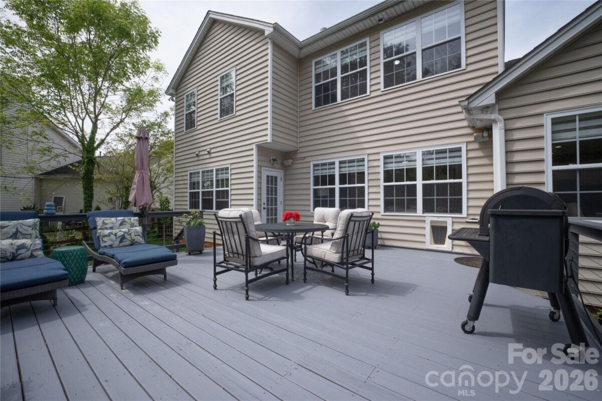 Welcome to this well-maintained 5-bedroom, 3.5-bath brick-and-vinyl home located in the Heron Harbor community of Tega Cay, SC. Situated on a 0.24-acre cul-de-sac lot, 2,737 sq ft residence offers functional living space and no HOA. Built in 2004, the main level features luxury vinyl plank flooring, a central vacuum system, and an integrated sound system, a primary suite with updated bath, dedicated office with French doors, half bath and laundry room. The open-concept kitchen includes granite countertops, stainless steel appliances, gas cooktop, double oven, and large island that opens to the main living area. Upstairs are four additional bedrooms and two full baths. Two finished attic spaces (not included in heated living area) serving as a dressing room and versatile game room. Outside, enjoy an oversized deck, fully fenced backyard with mature gardens and trees, sealed crawl space with dehumidifier, oversized driveway and two-car garage coated with epoxy flooring. Conveniently located in the top-rated Fort Mill School District, with easy access to community pool, clubhouse, tennis/pickleball courts, walking trails, Lake Wylie marina, Baxter Village shopping/dining, Uptown Charlotte, and the airport.