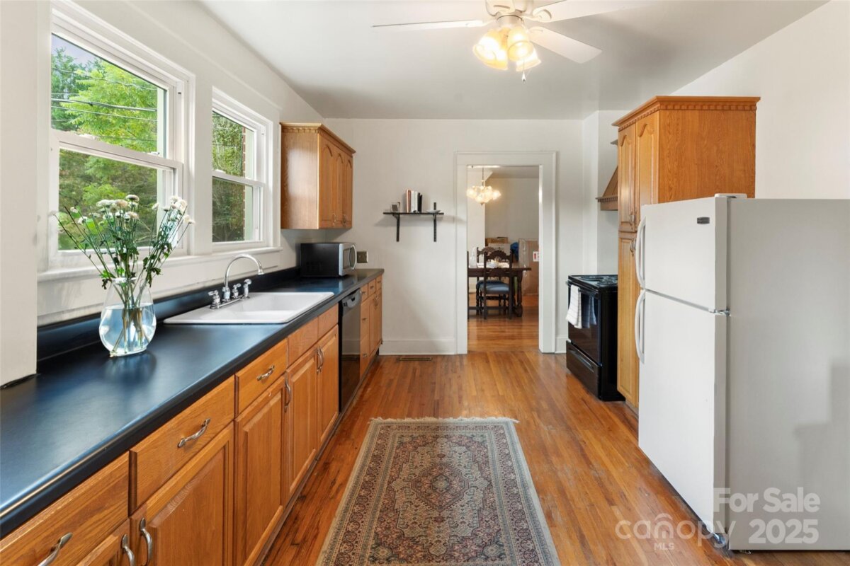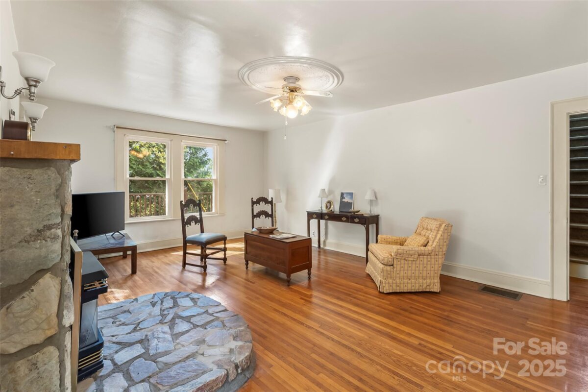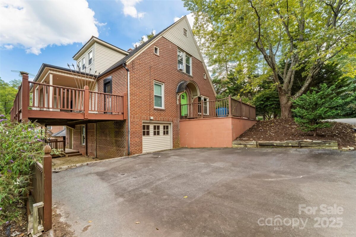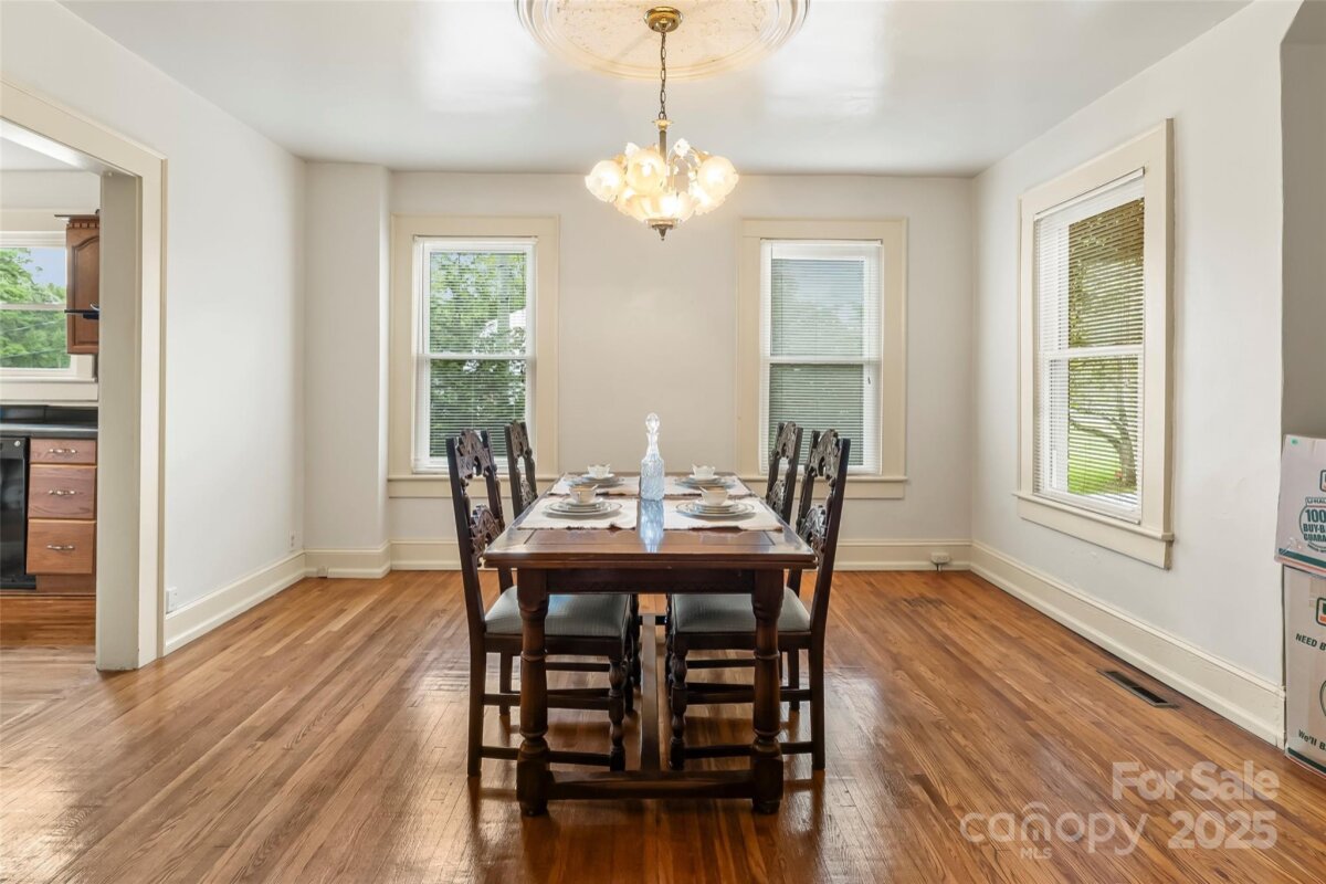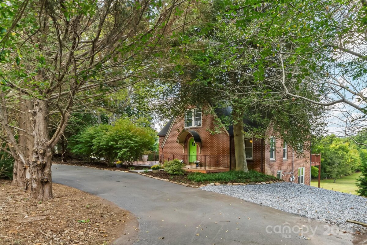 This 1940s brick bungalow has loads of charm with arched exterior doors, large moldings, ceiling medallions & hardwood floors throughout. The primary is conveniently located on the main floor with 3 additional bedrooms on the upper level each with their own walk-in closets. Gorgeous hardwoods on both levels. Separate dining room with french doors, living room, laundry room and open galley kitchen with lots of cabinets round out the first level. Full unfinished daylight lower level. 6 parking spaces. Lot is +/- 0.43 acres. Covered and uncovered deck on rear of the house with a large patio on the side of the house Level rear yard, circular drive and plenty of additional parking area. Great location just minutes from downtown Morganton.