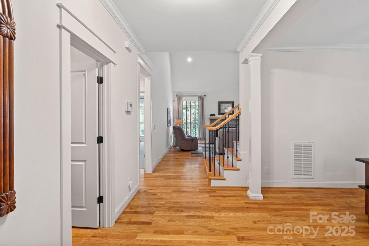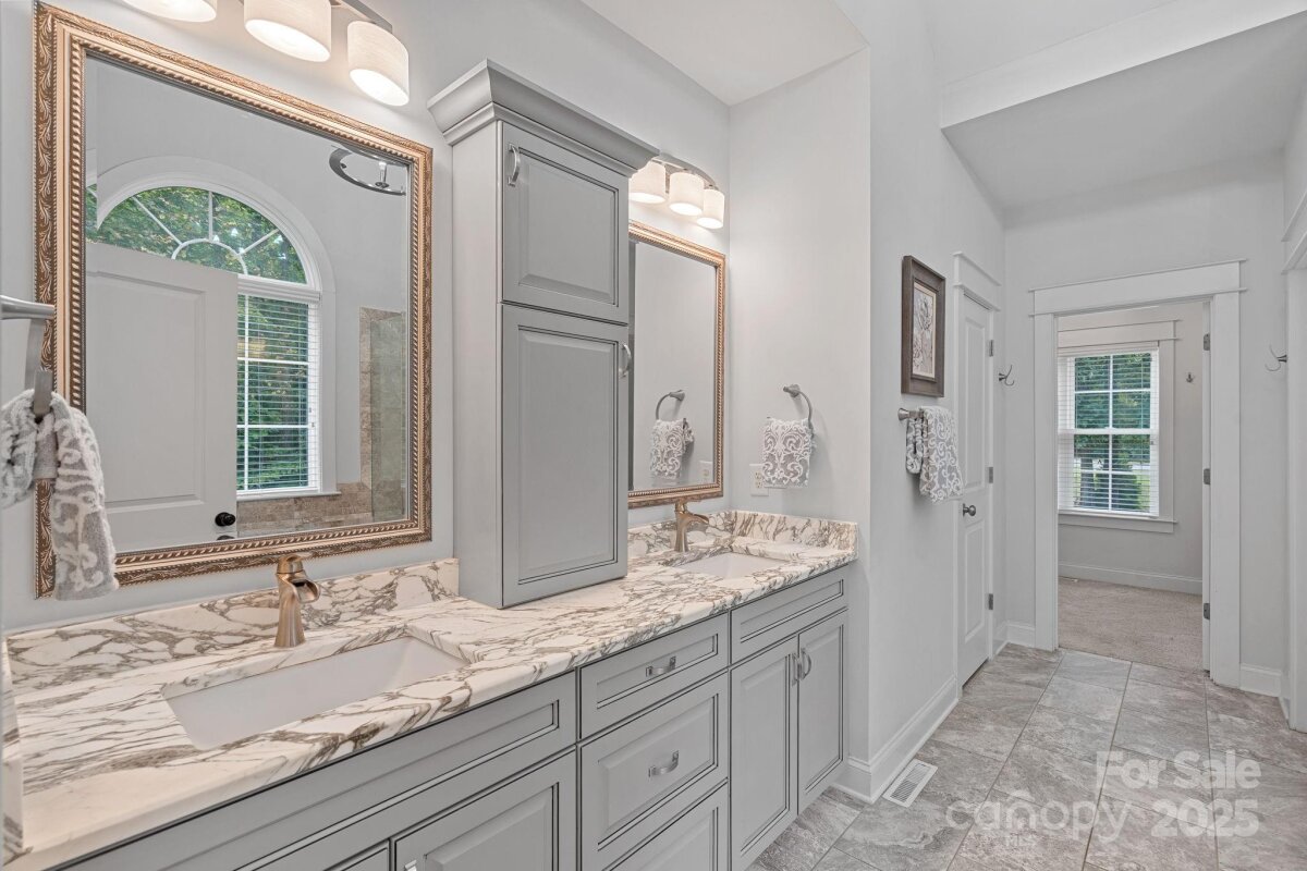 Welcome to 1207 Misty Creek Dr in the sought-after Autumn Woods neighborhood of Iron Station. Built in 2016 and set on nearly 2 acres of pristinely landscaped private land, this home provides comfort and serenity. You will love the front elevation, with its detailed wood and stone work. Inside, a stunning 2-story great room with a stone-accented gas fireplace and wood floors create an inviting focal point, exuding rustic, but yet modern, farmhouse charm. The main-level primary suite offers a tray ceiling, sitting area, spa-like bath with soaking tub, dual vanities, and a massive walk-in closet. The kitchen features granite counters, cream cabinetry, walk-in pantry, and flows seamlessly to the dining and living areas. A main-floor laundry with sink and storage adds convenience. Upstairs, you’ll find a loft plus 3 spacious bedrooms and 2 full baths. Outdoors, enjoy the beautifully manicured yard with its screened porch, large back deck, and cozy fire pit area; all surrounded by serene privacy. The 2 car garage is over sized for added space! Even more, the property provides RV or BOAT storage with the HOA!