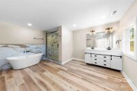 Welcome home to this beautifully renovated 3-bedroom, 2-bathroom home offering over 1,800 sq ft of comfortable living space on more than half an acre. You'll love the open floor plan filled with natural light and the thoughtful split-bedroom design that gives everyone their own space. The living room features an electric fireplace that adds the perfect touch of warmth, while the open flow makes it easy to gather with family and friends. The primary suite is truly a retreat, complete with a walk-in closet accented by barn doors and double doors leading out to a private deck where you can sip your morning coffee. The spa-inspired bathroom feels like your own personal getaway with double vanities, a large tiled walk-in shower, a soaking tub, and a private water closet. You’ll also love the convenience of having the laundry room right in the suite. The other bedrooms are spacious and inviting, each with easy access to a beautifully updated bathroom. Every detail of this home has been carefully refreshed, from the updated finishes to the bright, welcoming spaces. Step outside and enjoy over half an acre of land—perfect for relaxing, entertaining, or creating the backyard you’ve always dreamed of.