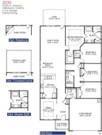 The 2030 floorplan is a beautifully designed single-story home offering 4 bedrooms, 2 bathrooms, and a 2-car garage. This thoughtfully planned layout provides the perfect balance of comfort, functionality, and style. A welcoming foyer leads into the heart of the home, where the spacious family room and open-concept design create a seamless flow for everyday living and entertaining. The kitchen features abundant cabinet space and quality finishes that add a touch of elegance while keeping everything within easy reach. The primary suite offers a spacious retreat with a large walk-in closet and a well-appointed ensuite bath featuring a dual vanity and a 5' tiled shower. Three additional bedrooms provide generous closet space and flexibility for family, guests, or a home office. Extend your living space outdoors on the oversized covered back patio, perfect for weekend gatherings or relaxing evenings enjoying the fresh air. Don’t miss the opportunity to make the 2030 floorplan your dream home.