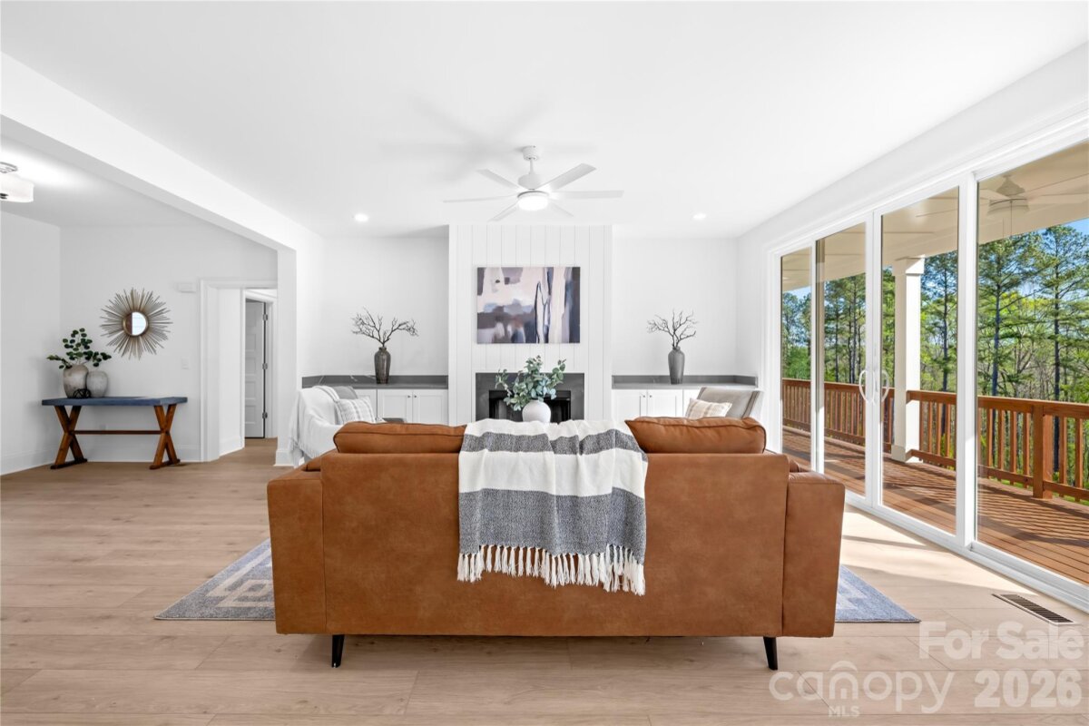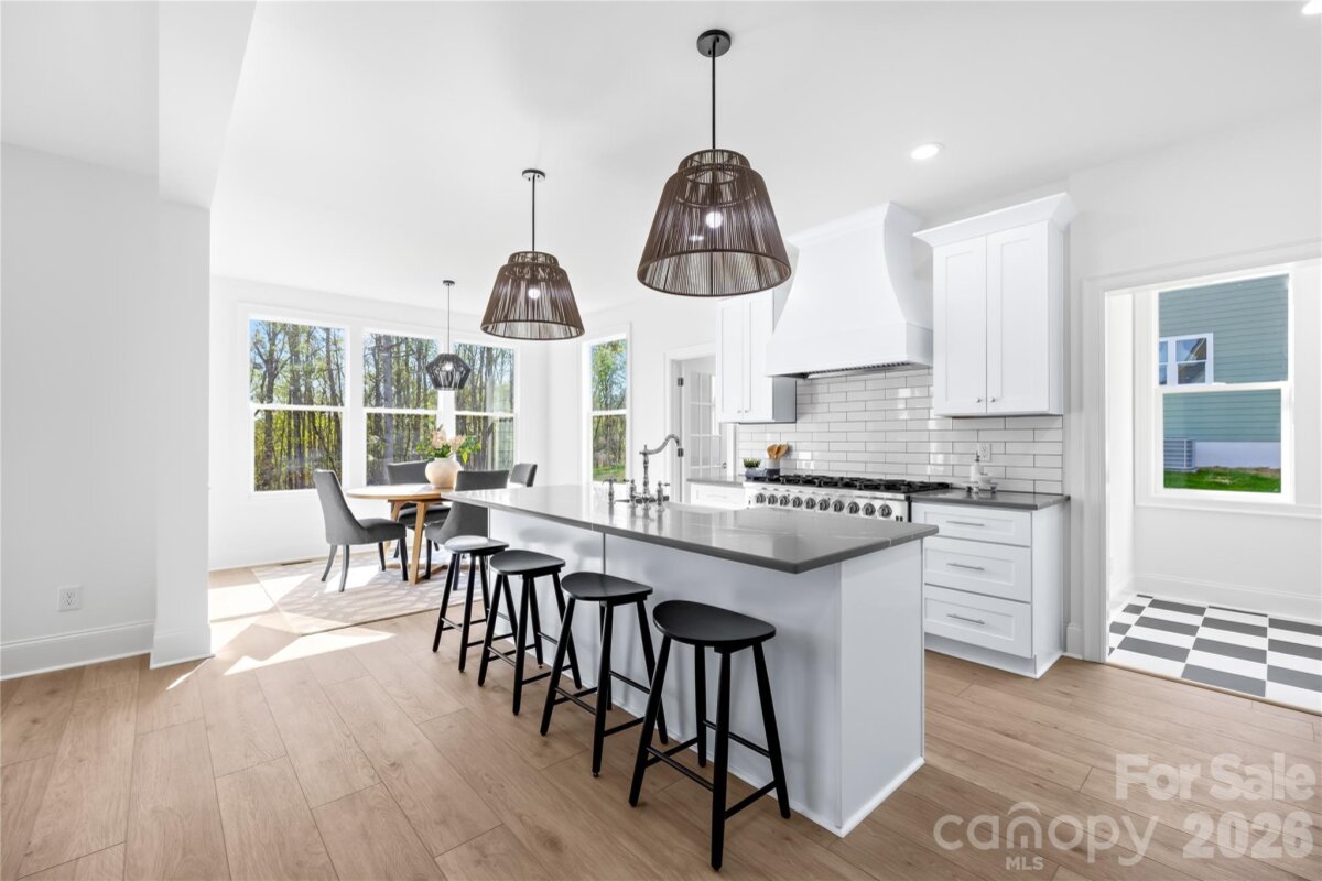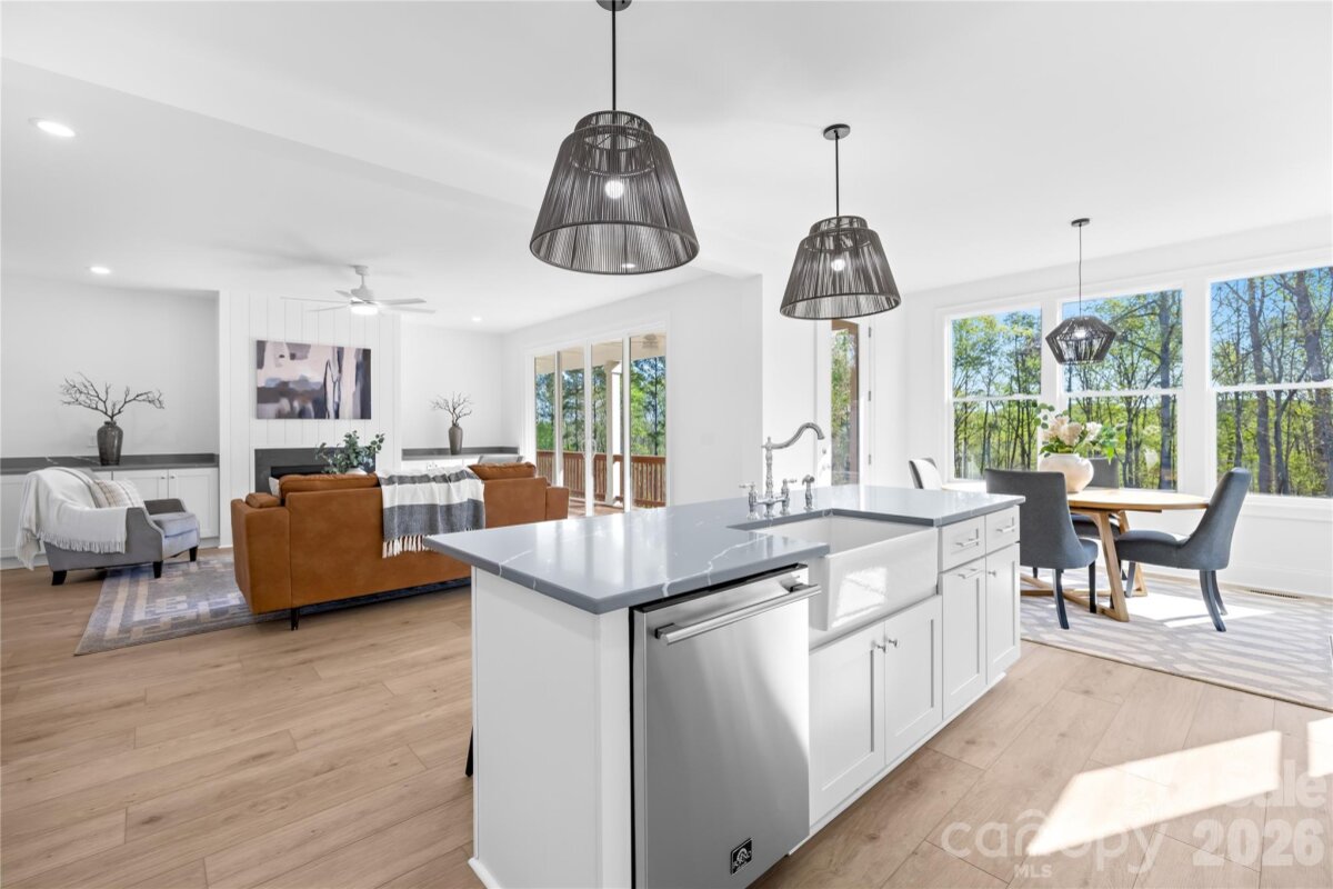 Tucked inside the quiet, gated community of River Oaks Landings along the Catawba River, with private access that carries you straight out to Lake Norman, this newly built home was designed with both intention and livability in mind. The kitchen immediately stands out as the centerpiece, with granite countertops, a large island, abundant cabinetry, a 6-burner gas range, custom vent hood, and a separate scullery with a pantry that keeps everything organized and out of sight. It flows naturally into the living room, where a shiplap gas fireplace adds warmth and oversized sliding glass doors open to the covered porch, extending the living space outdoors. The primary suite is positioned on the main level and feels like a true retreat, complete with a soaking tub, floor-to-ceiling tiled shower, dual vanities, and a custom walk-in closet with built-ins. The main floor also includes a powder bath, and a well-designed mudroom off the garage with laundry and a utility sink. Upstairs, the layout continues to feel both functional and flexible, with two bedrooms, two full baths, and a loft. Wide-plank LVP flooring runs throughout, and ceiling fans have been thoughtfully placed in all the right rooms, from the main living areas to the covered patio, enhancing comfort year-round. Every detail was considered in how this home lives day to day, blending clean design, practical spaces, and elevated finishes into something that feels both custom and easy.