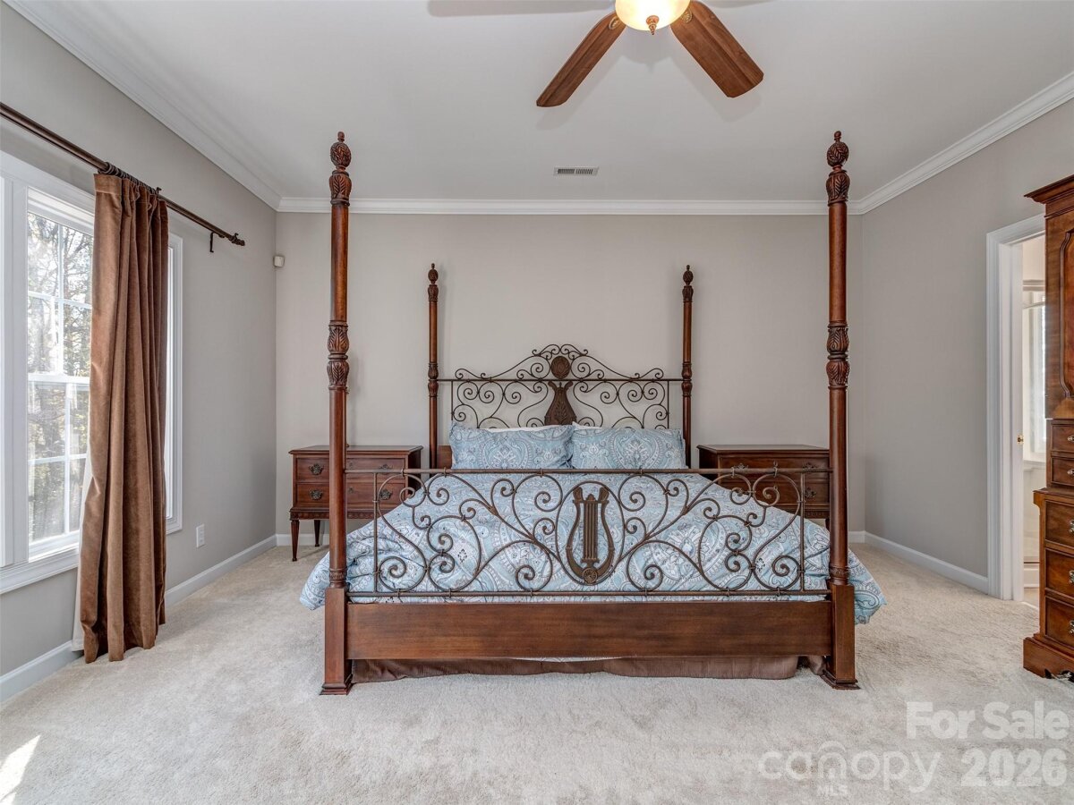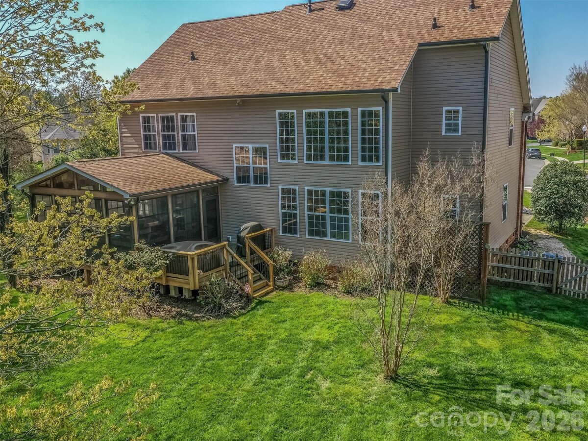 Don't miss your opportunity to own in one of Ballantyne's Premiere Communities of Providence Pointe. This amazing cul-de-sac lot is one of the largest in the community, is fenced, & is completely private! The entire interior has been freshly painted and is move-in ready! The floorplan is fantastic with dramatic 2 story foyer that flows into the formal dining room & formal living room that has vaulted ceiling! The great room & kitchen are perfect for entertaining & the kitchen boasts granite countertops, breakfast bar & island. The great room has gas log fireplace & has access to the spectacular screened porch where you will spend most of your time! The main floor also features a guest bedroom with access to a full bath. The oversized primary suite is on the 2nd floor & has a large primary bath with dual vanity, walk-in shower, garden tub, & large walk-in closet. The 2 guest rooms are also spacious & have access to a large guest bath. There is also a large bonus room that is perfect for a home theatre, game room, or possibly a 5th bedroom. The home also features solar panels that are adjacent to the home & fully paid for. As a new owner you will enjoy all of the benefits of free energy & none of the costs! The more than 1/2 acre lot backs up to lots of wooded space & has a lovely garden ready for Spring Planting. Providence Pointe has an unparalleled community amenity with clubhouse, pool, slide, splashpad, playground, tennis courts, & sport court! All located conveniently to all that Ballantyne has to offer! Make this your next home today!