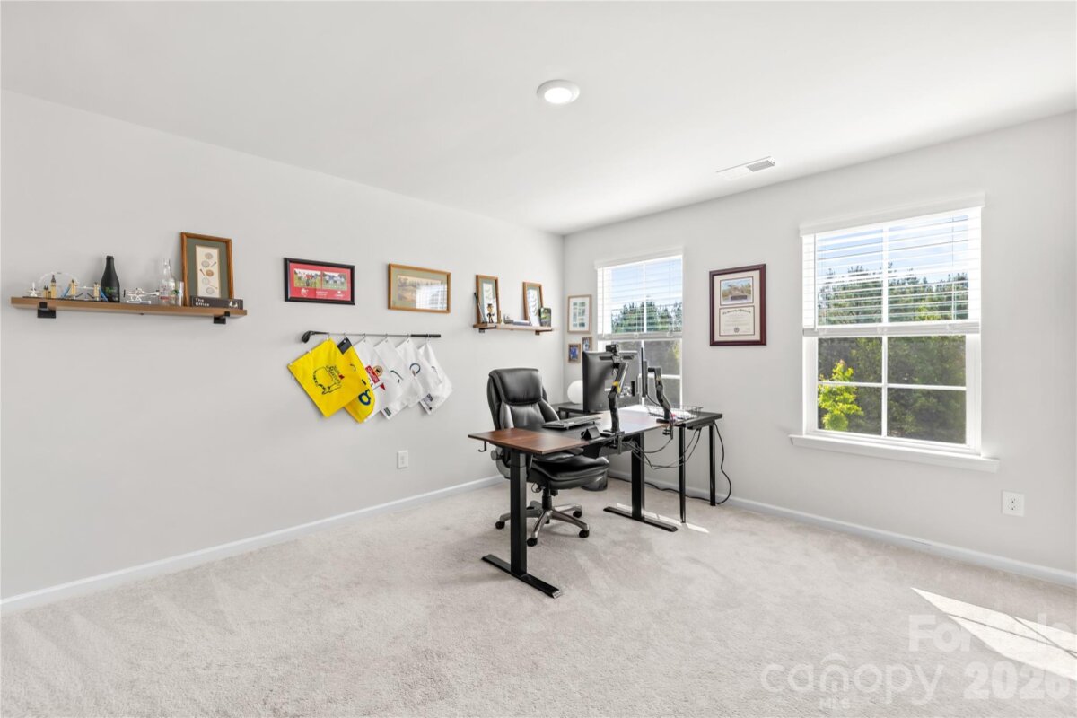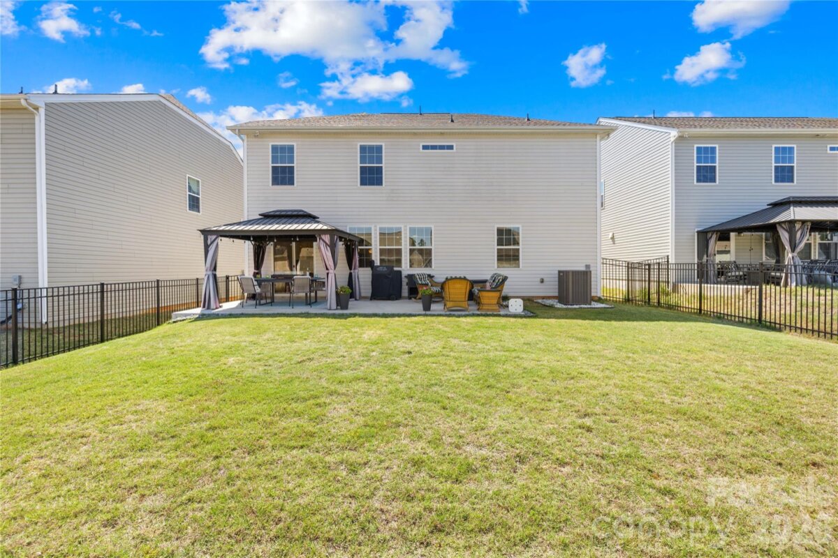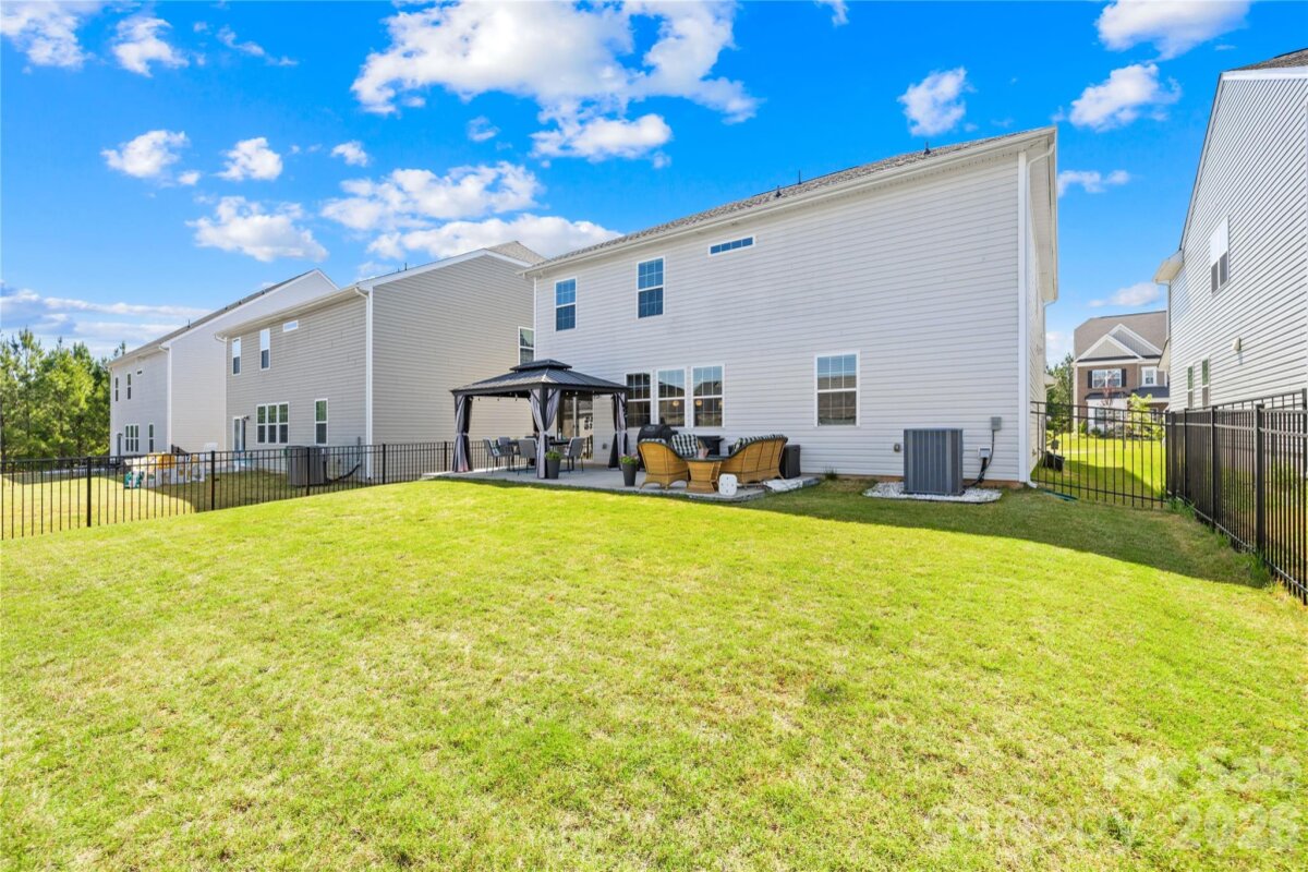 Better Than New & Move-In Ready! Why wait 10 months to build when you can own this stunning 2023-built Lennar "Grisham" model today? Nestled in the sought-after Chateau community of Steele Creek in a Cul-de-Sac. this spacious 5-bedroom, 4.5-bathroom home offers the perfect blend of modern luxury and practical design. Upgrades Galore including Office with Built in Shelves and Custom Closets and Extended Patio and Gazebo The open-concept main level is anchored by a chef-inspired kitchen featuring a gas cooktop, double ovens, granite countertops, and a massive island—ideal for entertaining. Unique to this floorplan is the private main-level guest suite with a full bath, perfect for multi-generational living or a secluded home office. Open Designer Living Room with beautiful Light Fixtures throughout the first floor Upstairs, retreat to a massive primary suite with a spa-like bath and oversized custom storage walk-in closet, plus a spacious loft for movie nights or a play area. Chateau Amenities: Resort-style pool, clubhouse, fitness center, tennis courts, and playground. 1 Location: Unbeatable proximity to River Gate shopping, McDowell Nature Preserve, Lake Wylie, and easy access to I-485/CLT Airport. 2 Exceptional value in a district where new builds are soaring