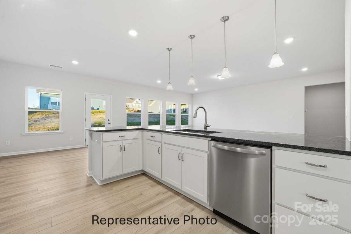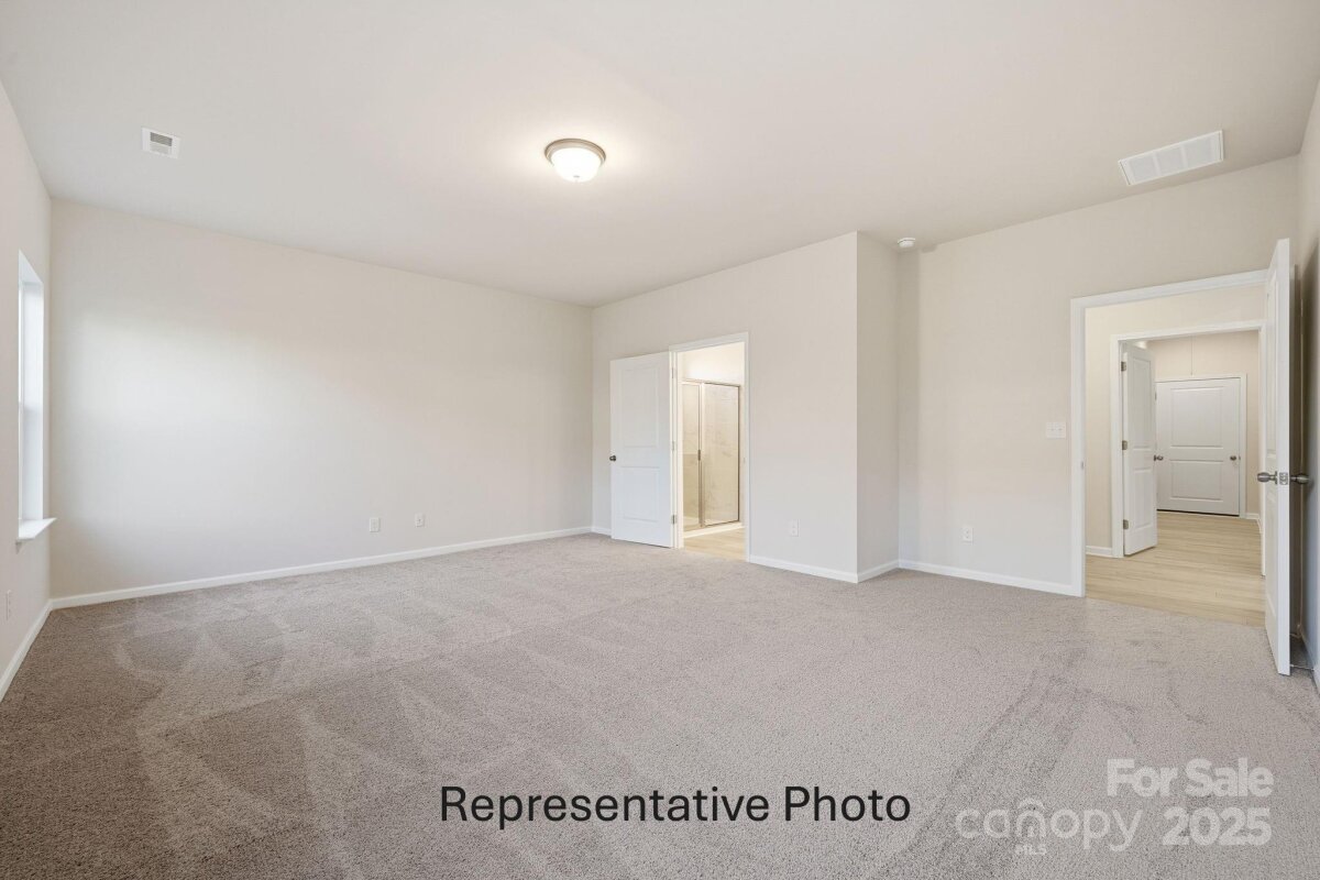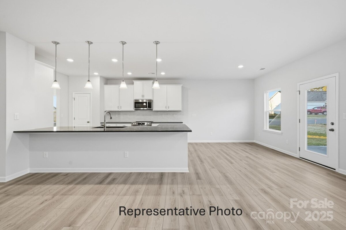 Welcome to The Avery at Pine Bluff! This rare ranch plan provides 3 spacious bedroom, 3 full bathrooms and over 2400 square feet of comfortable living. Upon entering you will step into a sizeable foyer that leads to an ample dining room and opens to a beautifully appointed kitchen. The upgraded kitchen includes white cabinets, stainless steel appliances, granite countertops, and a seated breakfast bar. As the kitchen opens to the family room, it creates an inviting atmosphere perfect for gatherings and everyday living. The primary bedroom boasts a luxurious ensuite that includes a walk-in closet, double sinks and a sizeable shower- your own private oasis for relaxation. Located just minutes from Villages at Red Bridge shopping center, Locust Town Center, Red Bridge Golf Club, grocery stores, Rob Wallace Park and a short drive to I485, Novant Health Mint Hill Medical Center and Publix. Come visit our model and see this plan in person. You will not be disappointed! ASK ABOUT OUR SPECIAL FINANCING AND EXCITING PROMOTIONS!
