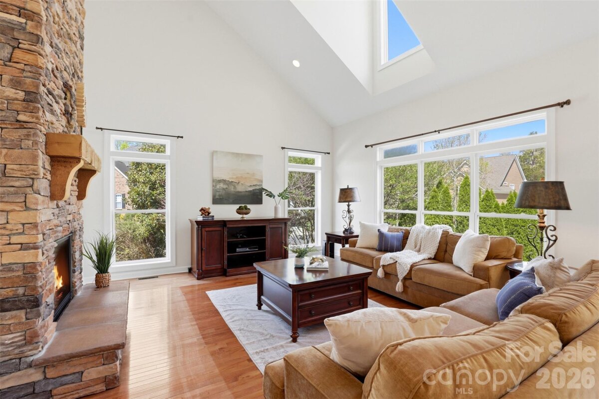 This is the one you’ve been waiting for. Located on corner lot of a cul de sac. An Exceptional 4,300+ square foot Shea custom home featuring a rare three-and-a-half car side-load garage with stunning curb appeal from the moment you arrive A spacious covered front porch welcomes you into a thoughtfully designed interior, with a private office/living room, an elegant formal dining room with an expansive butler’s pantry set the stage for both everyday living and entertaining. The impressive two-story great room, anchored by a gas fireplace, flows seamlessly into a morning room with its own fireplace—creating a warm and inviting atmosphere. The gourmet kitchen is beautifully appointed with granite countertops, white cabinets, stainless steel appliances, double ovens, and an open layout ideal for gathering. Large walk in pantry. Walls of windows fill the home with natural light and offer serene views of the beautifully landscaped yard. The main level features real hardwood flooring and a spacious primary suite with a double tray ceiling. The luxurious primary bath includes dual closets and tiled shower with bench and soaking tub. Upstairs, you’ll find a versatile loft area, an oversized bonus/media room, and three generously sized secondary bedrooms—one with a private en-suite bath. Storage is abundant throughout, including an unfinished walk-in attic space and the oversized garage. Roof is less then a year old and has radiant barrier. 11 zone irrigation. Located in the highly sought-after Lawson community, residents enjoy resort-style amenities including a clubhouse with fitness center, multiple pools, tennis/sport courts, playgrounds, and scenic walking trails. Zoned for award-winning schools and conveniently located near historic downtown Waxhaw and all that South Charlotte has to offer.
