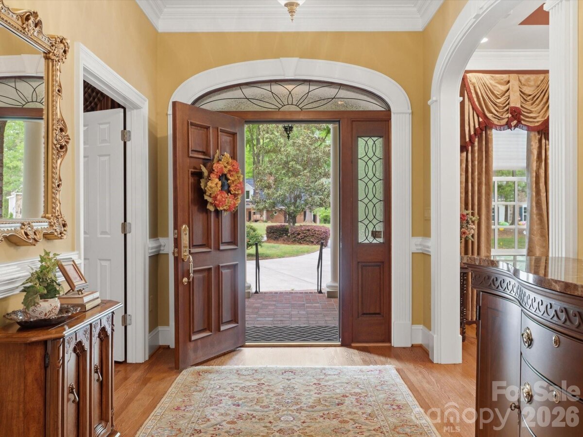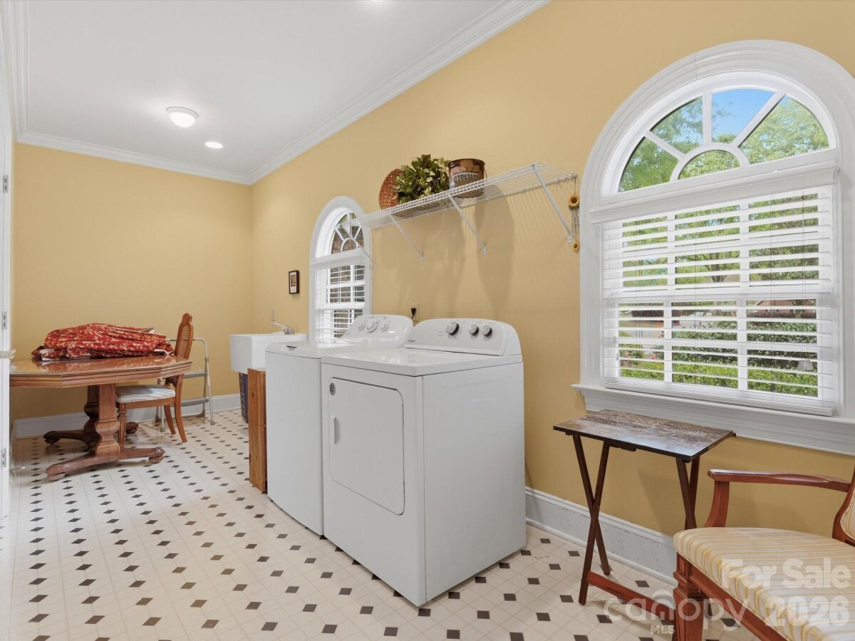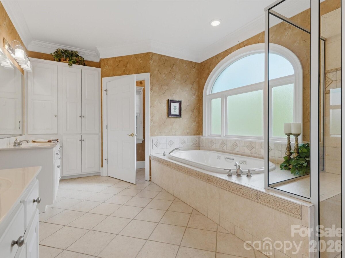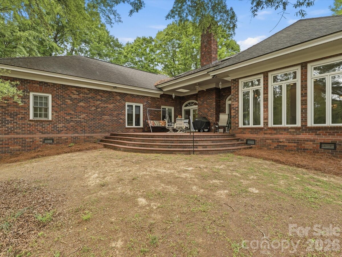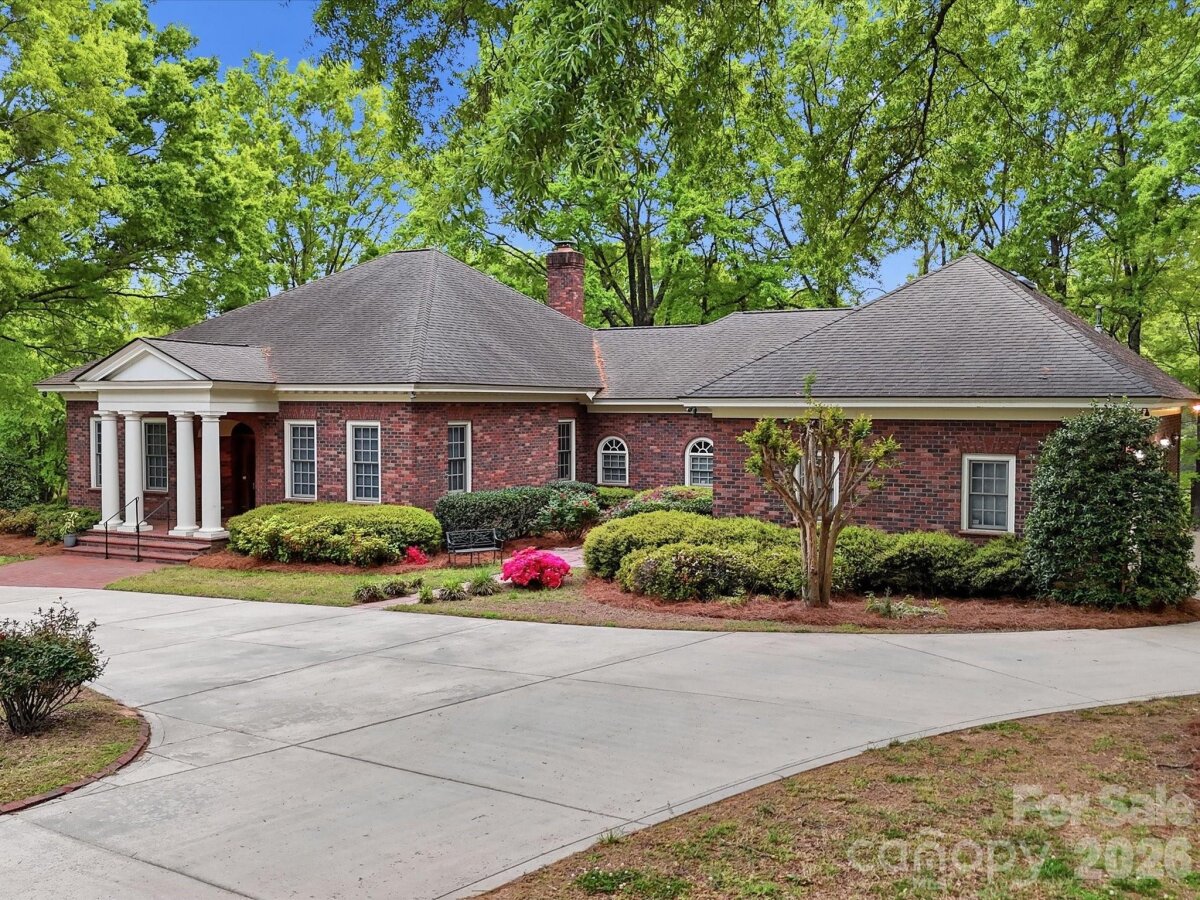 A rare opportunity to own a custom-built, solid brick ranch showcasing timeless craftsmanship, thoughtful design, and peaceful lake views in desirable Lakeview Estates. Situated on a private, wooded corner lot, this home makes a stunning first impression with a sweeping curved driveway, mature landscaping, and a substantial solid wood front door with decorative leaded glass insert set within an arched entry. This home reflects true quality construction rarely found today. Inside, you will find extensive millwork, stain-in-place hardwood floors, and a creative architectural design featuring arches, curves, and transom windows that carry a cohesive style throughout the home. Natural light fills the open floor plan, highlighting the home’s pristine condition and well-maintained interiors. Designed for both comfort and accessibility, this ranch home offers wide hallways, multiple zero-entry points, and ADA-compliant features throughout. The layout includes 3 bedrooms plus a dedicated office with closet that can easily serve as a 4th bedroom, with additional adjoining space that could accommodate a future bathroom or secondary office (see floor plan). The primary suite features dual vanities, a jetted soaking tub, walk-in shower with seating, and generous storage. The kitchen opens to the main living areas and offers beautiful lake views, built-in oven/microwave, walk-in pantry, and functional layout ideal for everyday living and entertaining. The spacious family room flows seamlessly into a large Four Seasons sunroom with tile flooring and views of the lake. Outdoor living continues with a circular brick patio that mirrors the home’s architectural curves, while the protected lot across the street helps preserve the lake view. Car enthusiasts, hobbyists, or those needing extra storage will appreciate the 4-car garage setup, including a 2-car attached garage, a separate single-bay attached garage that is fully heated and cooled via the home’s HVAC system (not a standalone unit), and an additional detached single garage ideal for a boat, golf cart, or lawn equipment. An unfinished space above the garage offers excellent potential for future expansion. Plans for stair access are available and the space is easily accessible from the end of the hallway. No pets have ever lived in the home, contributing to its exceptionally clean and pristine condition. Conveniently located near the growing downtown area of Monroe with dining, shopping, and community events, and with easy access to major highways and Charlotte Douglas International Airport. Too many features to list. Please refer to the “Features of This Home†document attached in MLS for a complete overview of this truly special property.