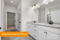 Large Corner Lot!! The Langford ranch floor plan at Pine Bluff is one level living at its finest. The spacious great room is conveniently located next to the kitchen which features a seated island, 36" cabinets, granite countertops, tile backsplash and stainless-steel appliances. The primary en-suite is equipped with a double vanity, a large tiled walk-in shower and a huge walk-in closet. The covered back patio provides the perfect space for outdoor leisure. This community features rare 90-foot-wide lots that provide desirable space between the homes. Durable vinyl plank floors throughout the main living areas and blinds are included. Located just minutes from Villages at Red Bridge shopping center, Locust Town Center, Red Bridge Golf Club, grocery stores, and Rob Wallace Park. We are a short drive to I485, Novant Health Mint Hill Medical Center and Publix. Schedule your appointment today- your new home awaits. ASK ABOUT OUR SPECIAL FINANCING AND EXCITING PROMOTIONS!