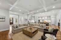 Custom built by Kelly McArdle and designed by renowned architects, Smith/Slovik and perfectly situated on a rare .46-acre flat lot, this exceptional home offers luxury, comfort, and an ideal floorplan in the highly sought-after Cotswold neighborhood—just 10 minutes to Uptown and 5 minutes to SouthPark’s premier shopping and dining. The chef’s kitchen impresses with top-of-the-line appliances, a gas range with hood, double ovens, an oversized island, and a massive walk-in pantry complete with a second refrigerator. The kitchen flows effortlessly into a spacious living room featuring coffered ceilings, built-ins, and a cozy fireplace, creating the perfect environment for both everyday living and elegant entertaining. The main-level primary suite is a true retreat with an oversized walk-in closet with custom built-ins, dresser island and incredible storage. Primary bathroom has dual vanities, a soaking tub, and separate shower with multiple heads. A flexible front room on the main level easily serves as an office or additional dining space, connected to the kitchen and main living by a wine bar and beverage station. Outdoor living shines with a stunning screened bluestone porch featuring a wood-burning fireplace overlooking the expansive, flat yard—offering plenty of room to add a pool. Outside, you'll also find a rare, 3-car garage that leads back into the home through a mudroom/drop-zone and connects to laundry room 1 of 2! Upstairs you’ll find four generous bedrooms, including two with en suite baths and two that share an additional full bath. A second laundry room adds convenience, while the massive bonus/media room and additional loft provide incredible space for recreation, gatherings, or movie nights. This home truly combines luxury craftsmanship with everyday livability in one of Charlotte’s most coveted locations.